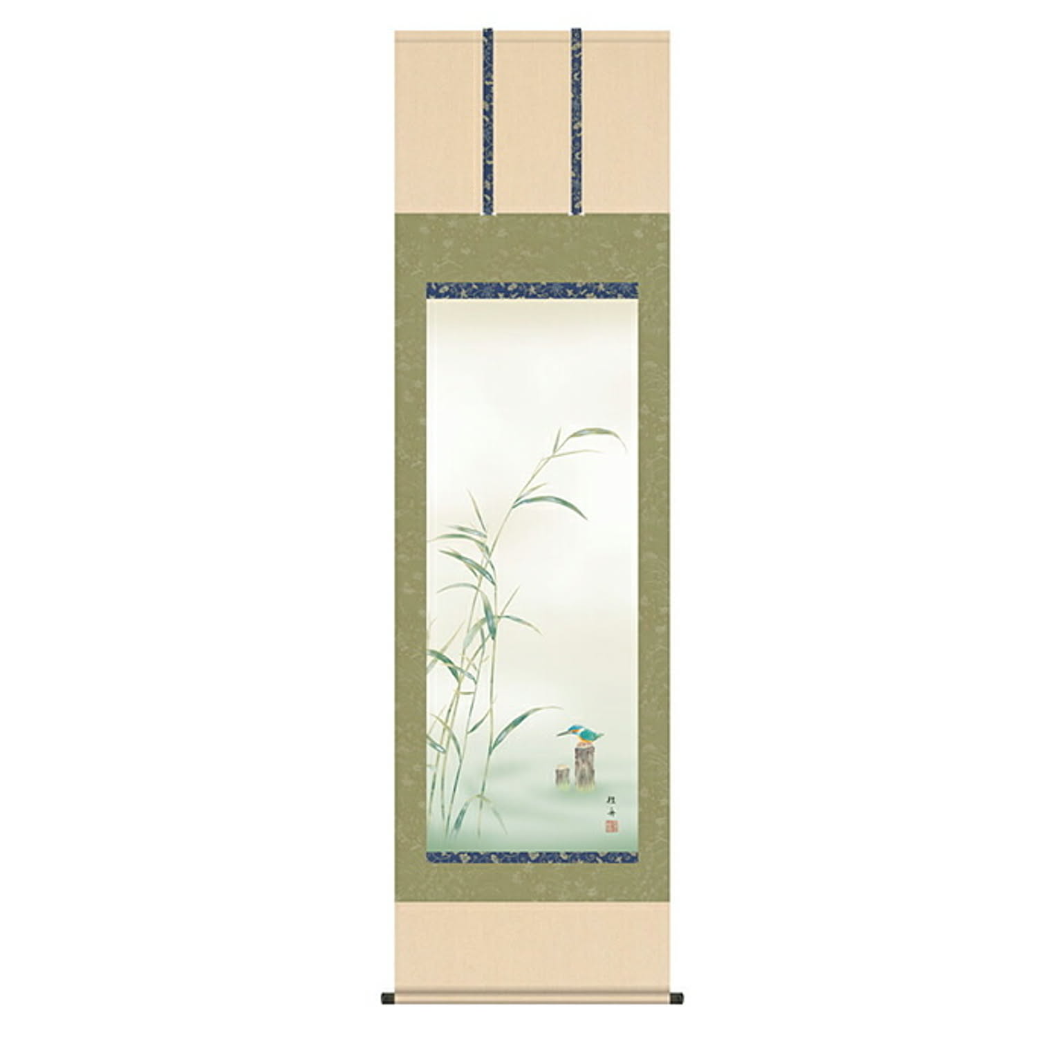 掛け軸 翡翠 長江桂舟 54.5x190cm 三幸