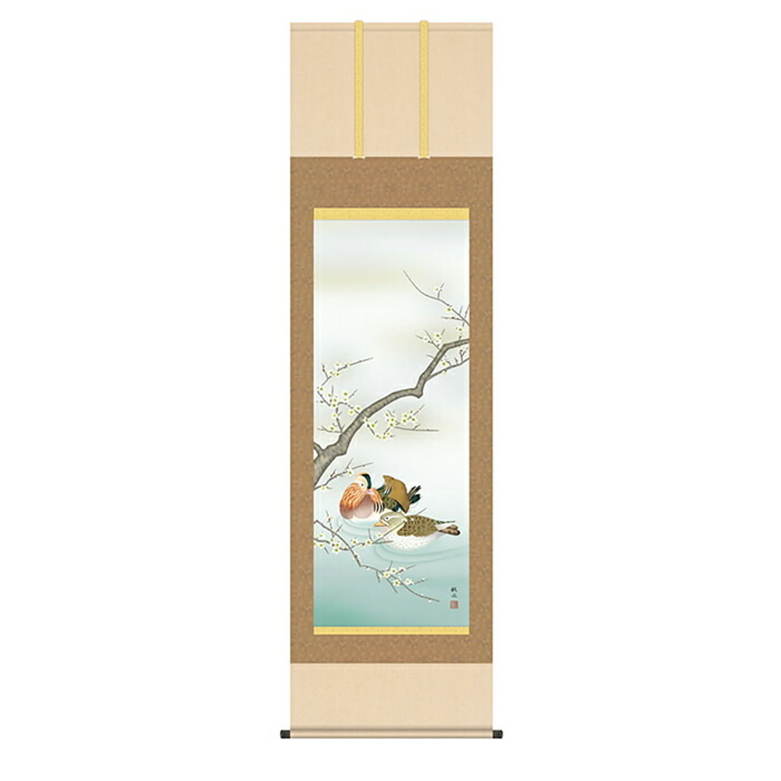掛け軸 梅に鴛鴦 浮田秋水 54.5x190cm 三幸