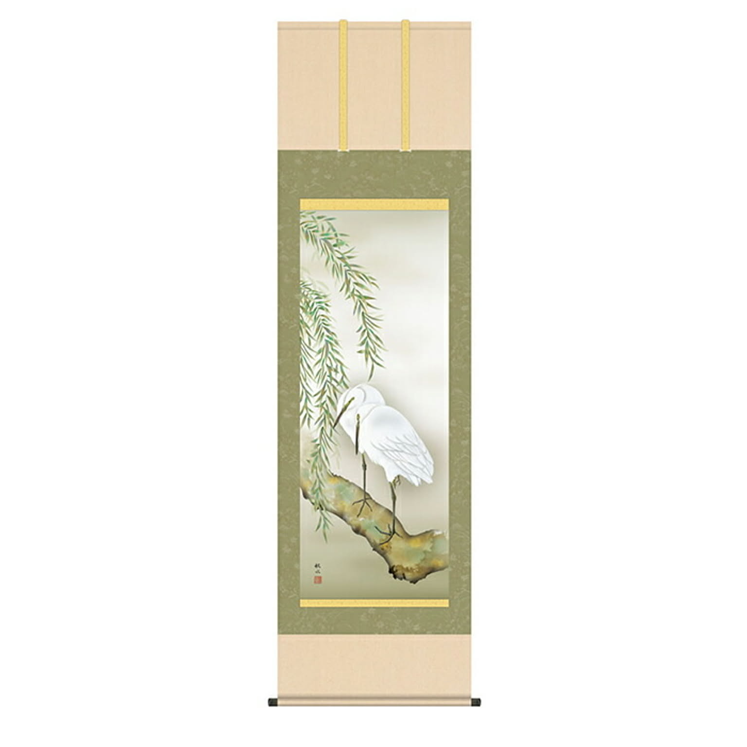 掛け軸 白鷺 浮田秋水 54.5x190cm 三幸