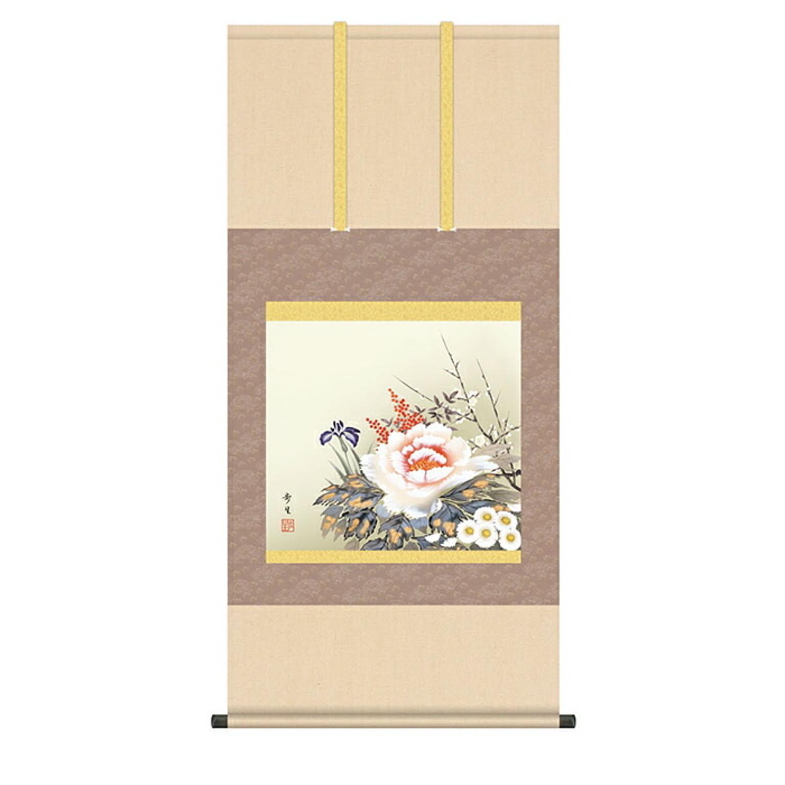 掛け軸 四季花 北山歩生 54.5x115cm 三幸