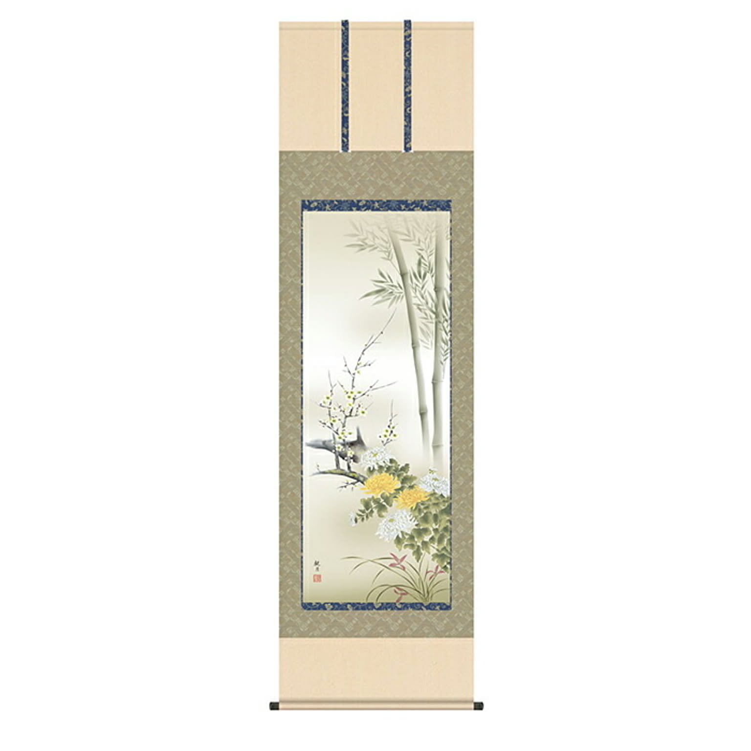 掛け軸 四君子 森山観月 54.5x190cm 三幸