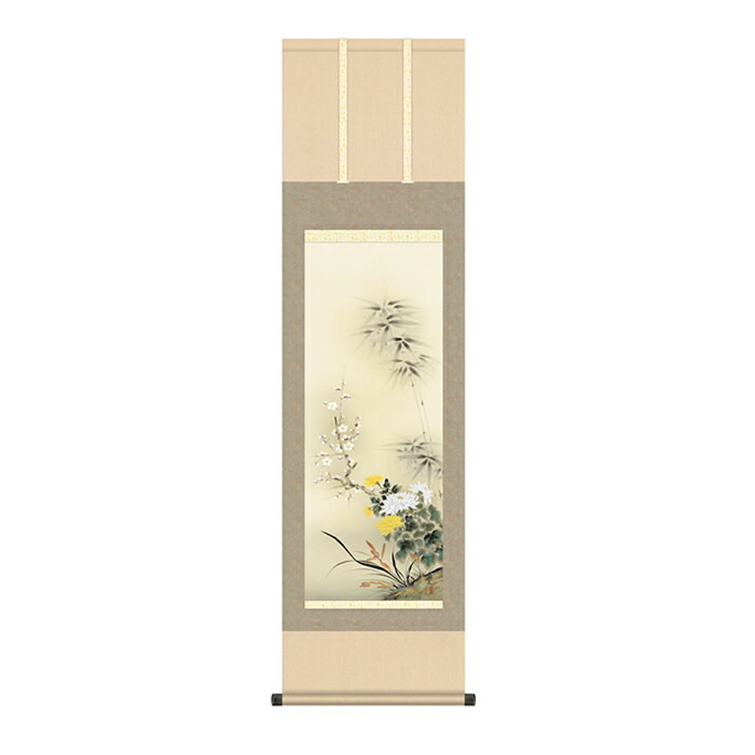 掛け軸 四君子 高見蘭石 44.5x164cm 三幸