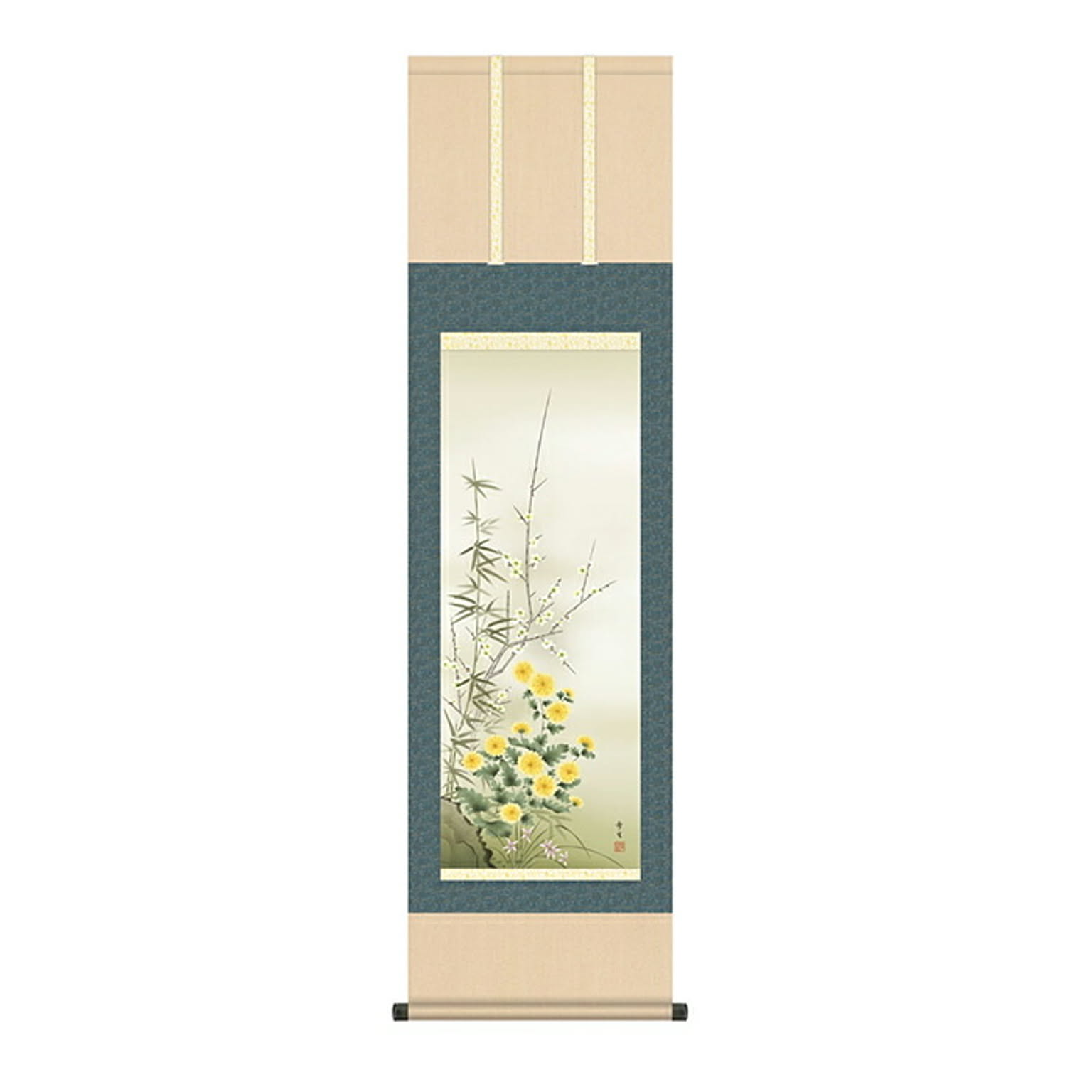 掛け軸 四君子 北山歩生 44.5x164cm 三幸