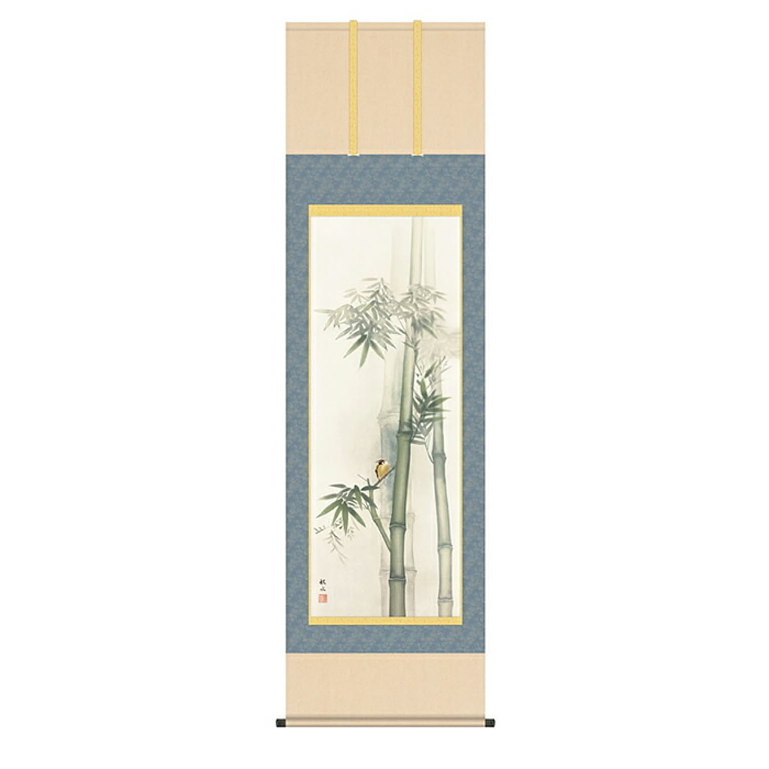 掛け軸 竹に雀 浮田秋水 54.5x190cm 三幸