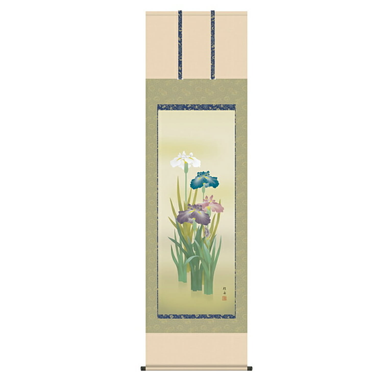 掛け軸 菖蒲 長江桂舟 54.5x190cm 三幸