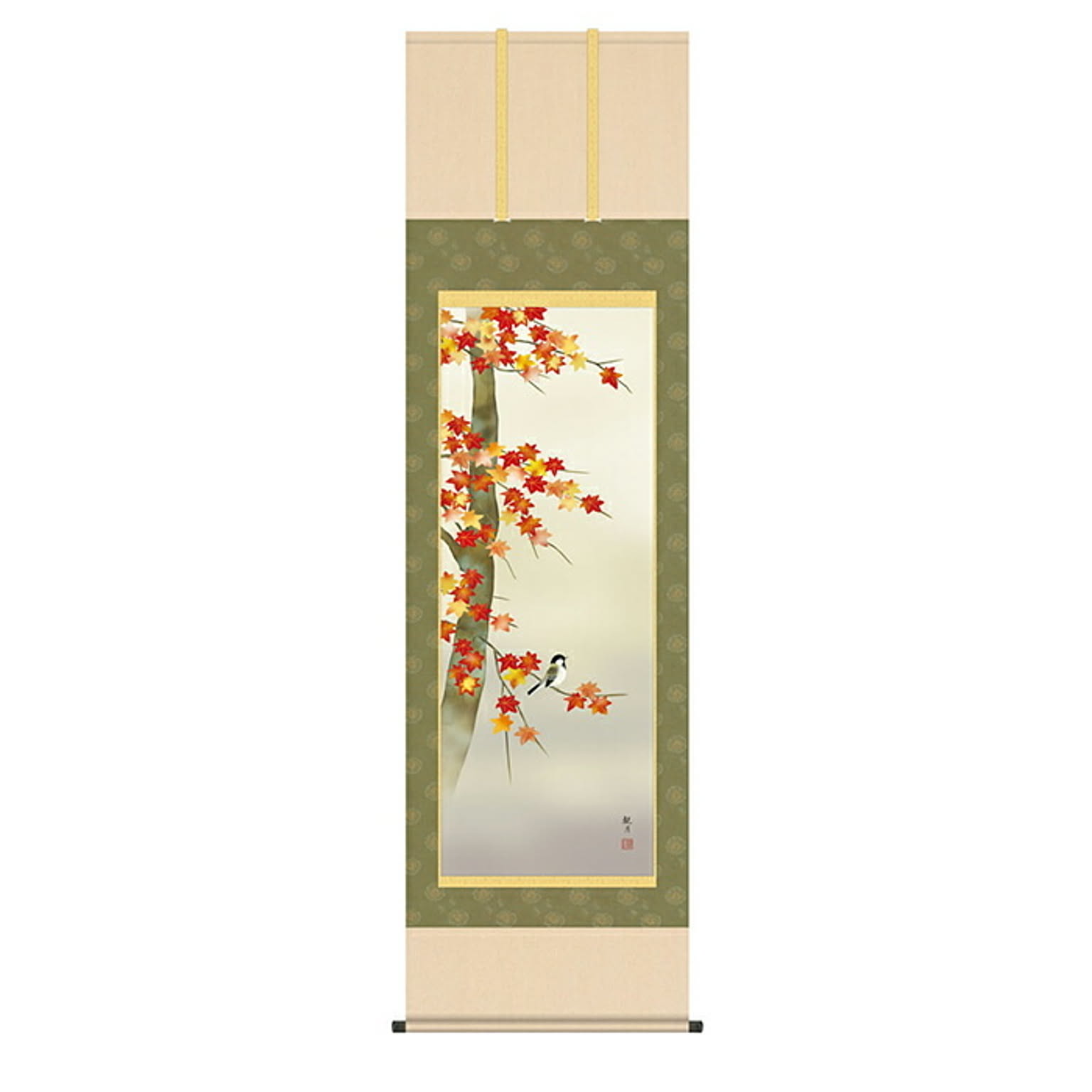 掛け軸 紅葉に小鳥 森山観月 54.5x190cm 三幸