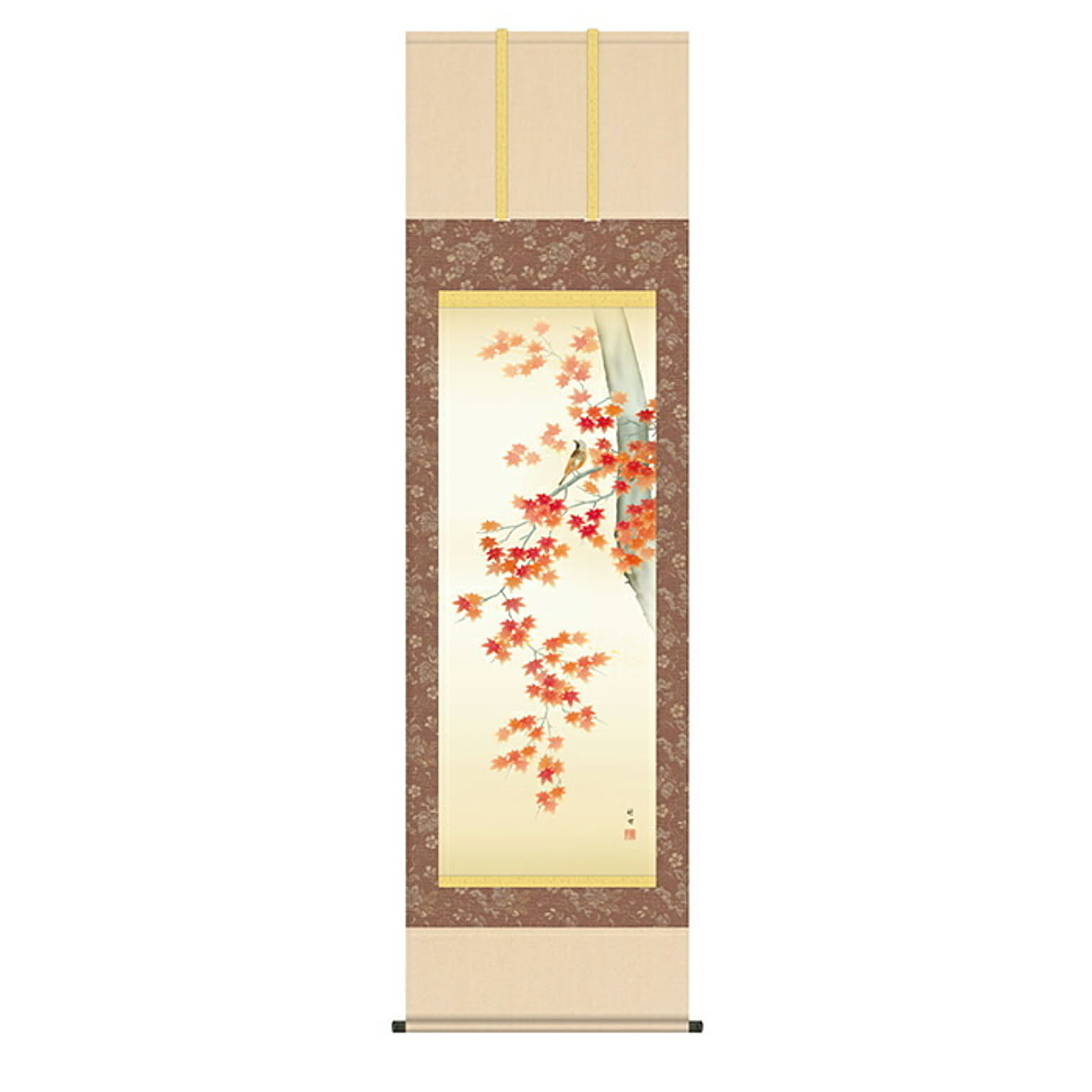掛け軸 紅葉に小鳥 田村竹世 54.5x190cm 三幸