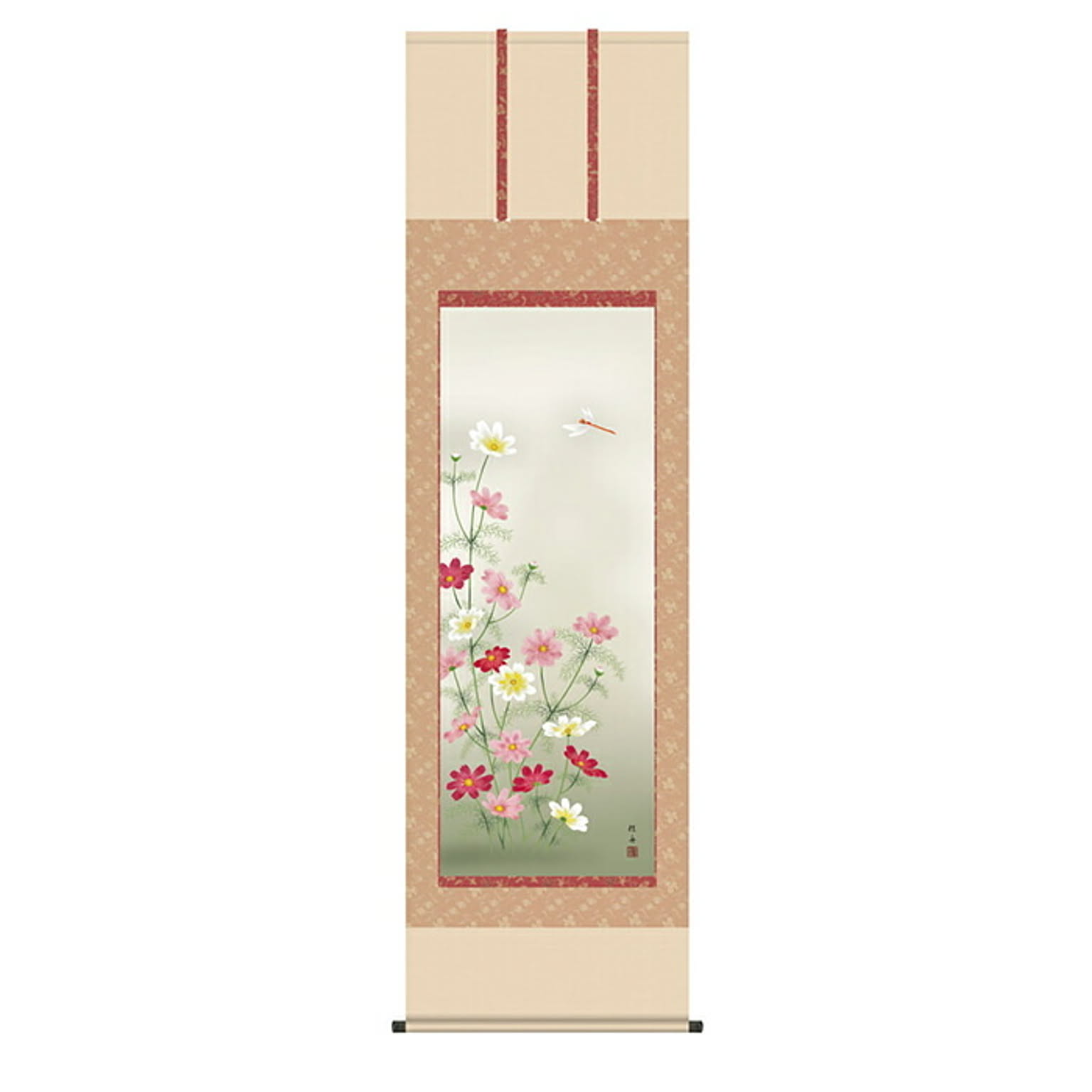 掛け軸 秋桜 長江桂舟 54.5x190cm 三幸