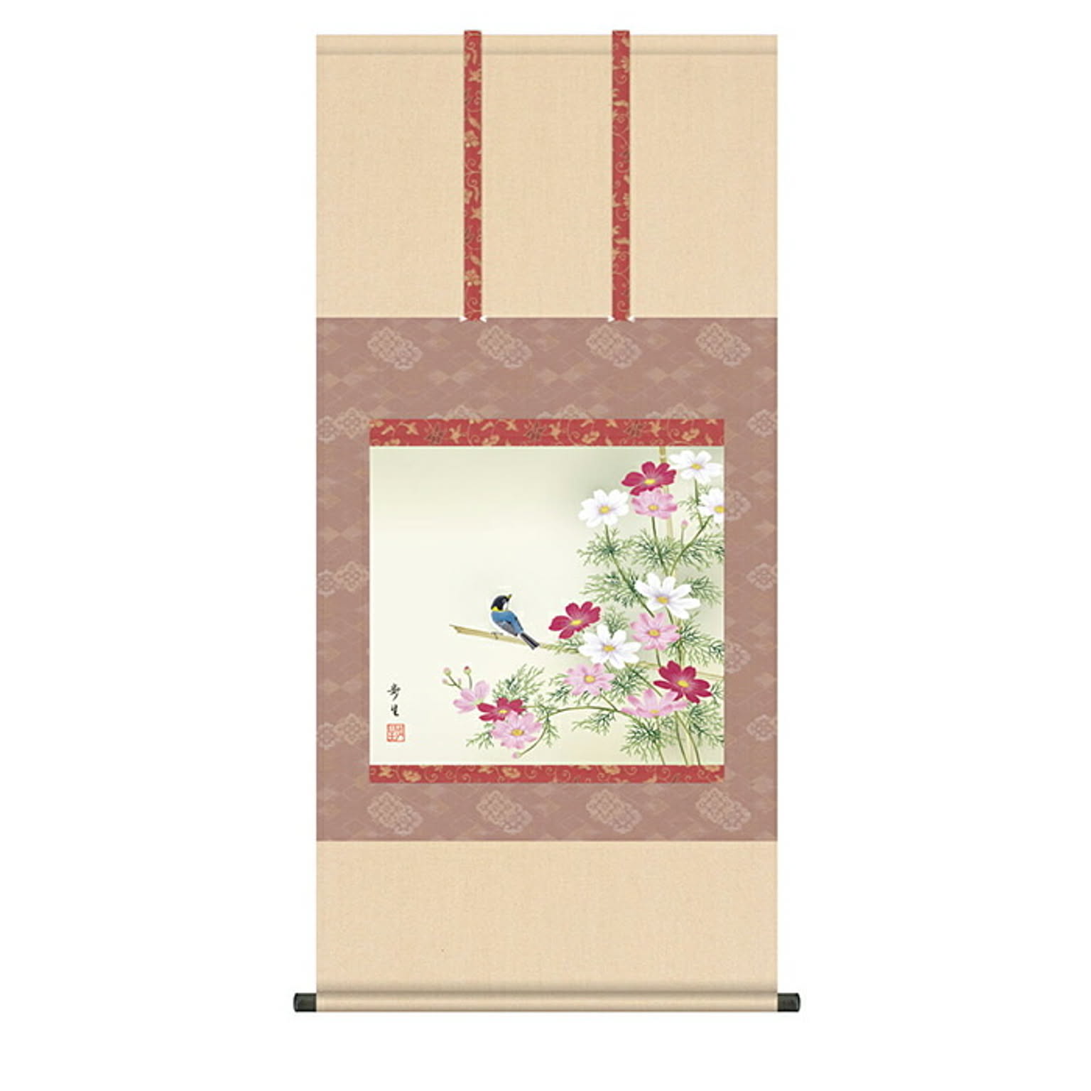 掛け軸 秋桜 北山歩生 54.5x115cm 三幸