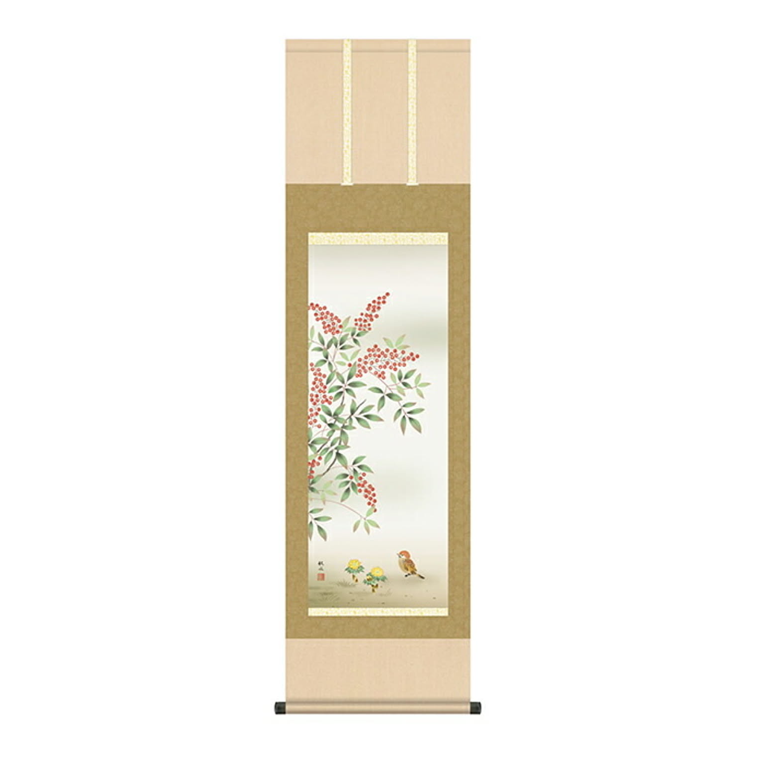 掛け軸 南天福寿 浮田秋水 44.5x164cm 三幸