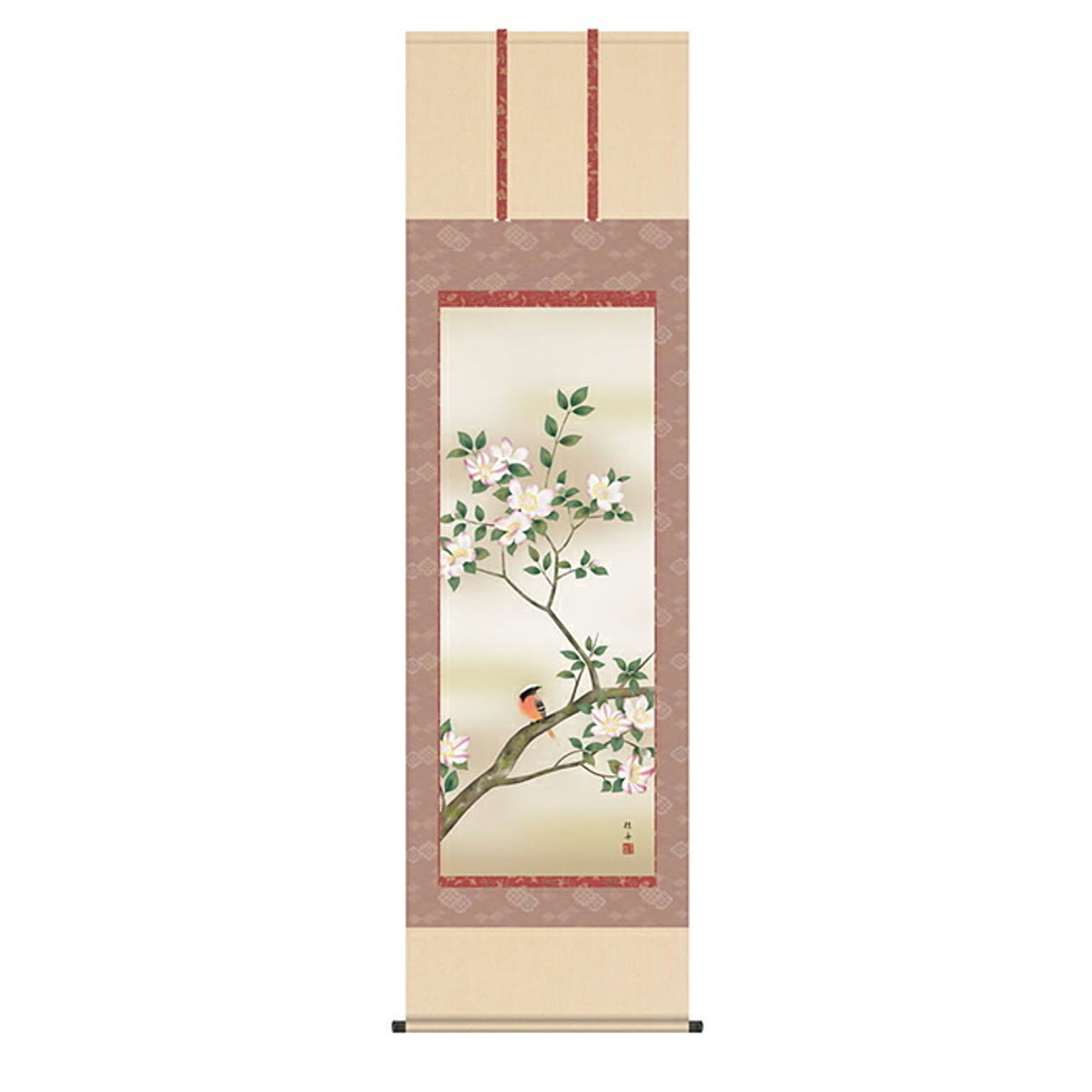 掛け軸 山茶花に小鳥 長江桂舟 54.5x190cm 三幸