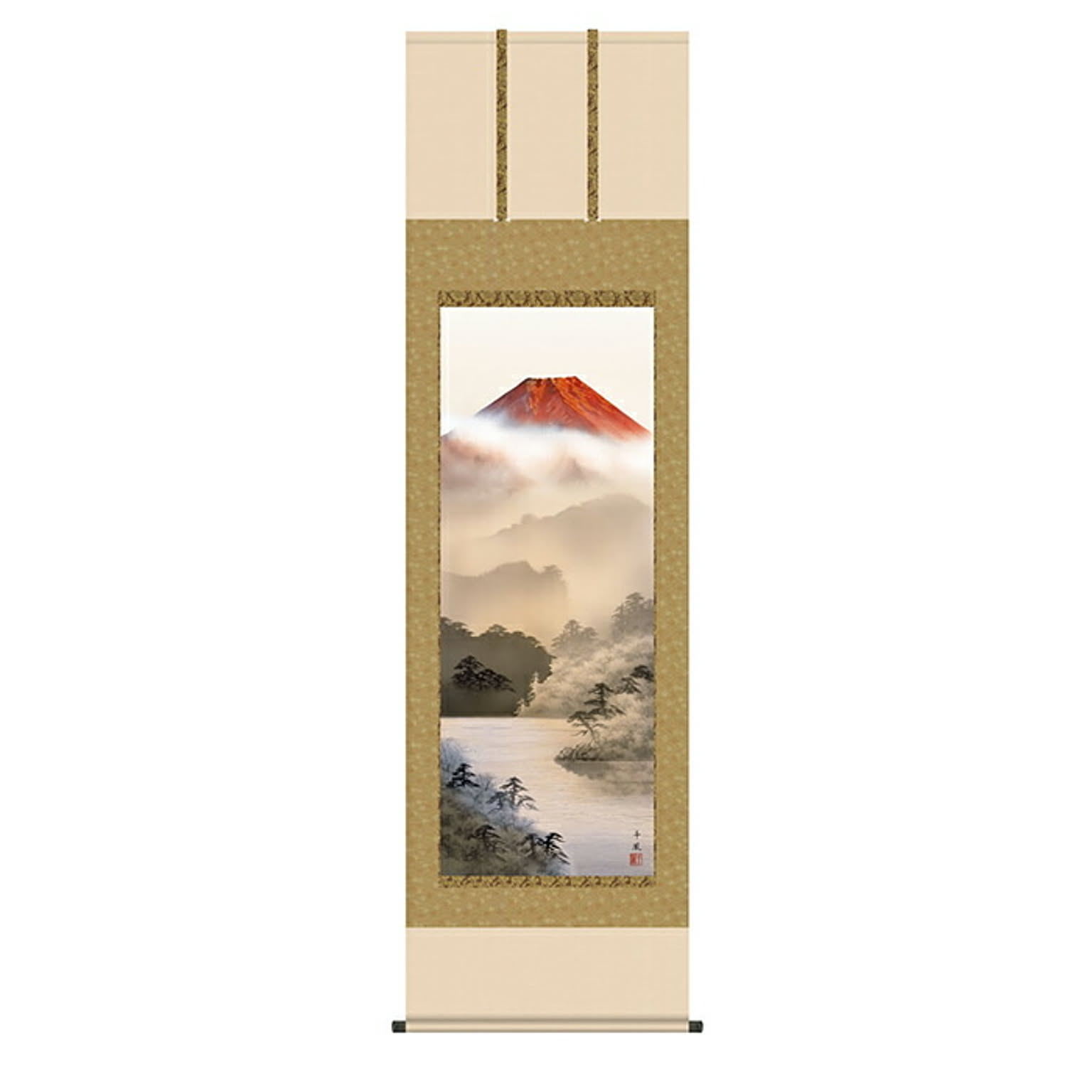 掛け軸 赤富士 熊谷千風 54.5x190cm 三幸