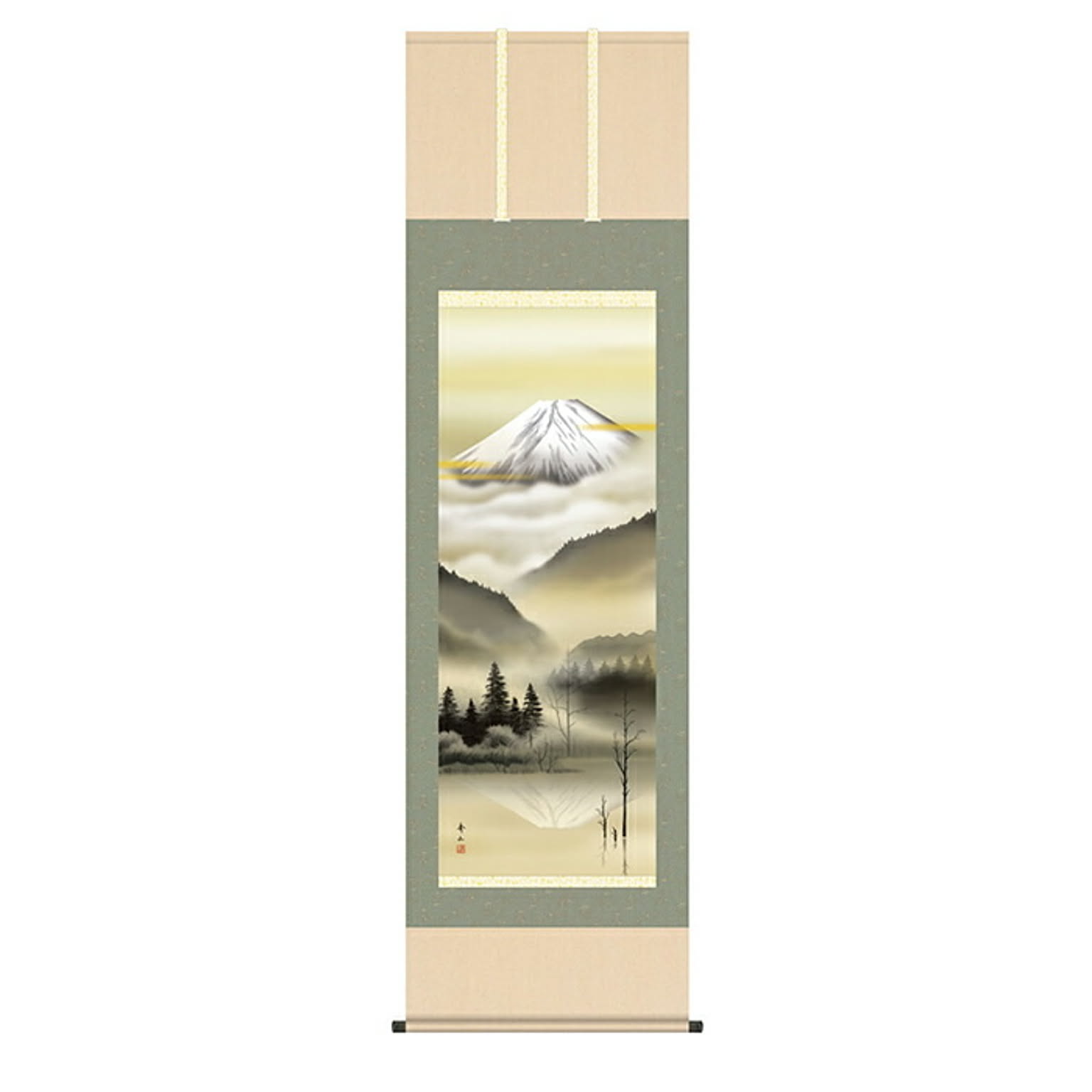 掛け軸 黎明富士 鈴村秀山 54.5x190cm 三幸
