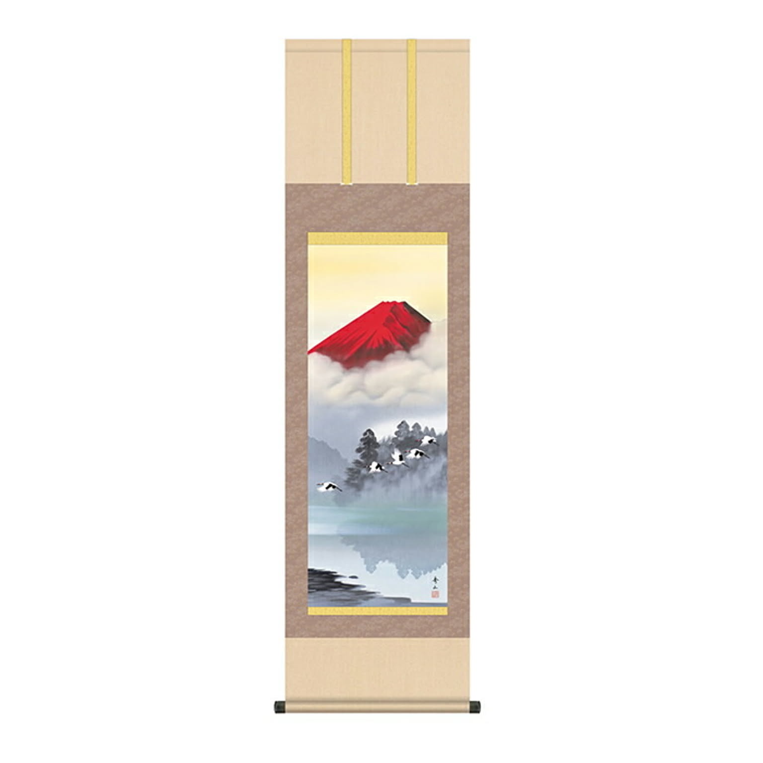 掛け軸 赤富士飛翔 鈴村秀山 44.5x164cm 三幸