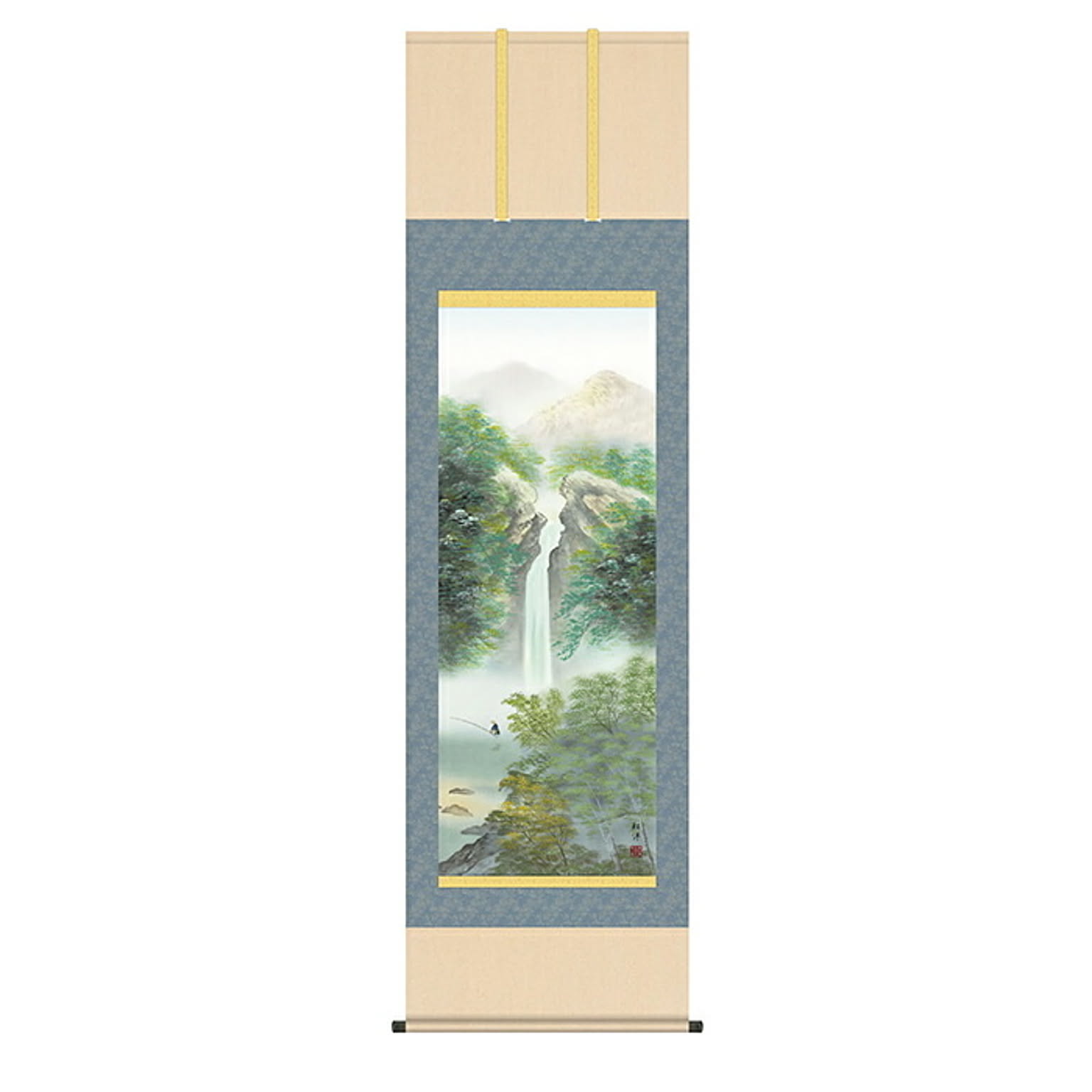 掛け軸 新緑清瀧 田口紅洋 54.5x190cm 三幸