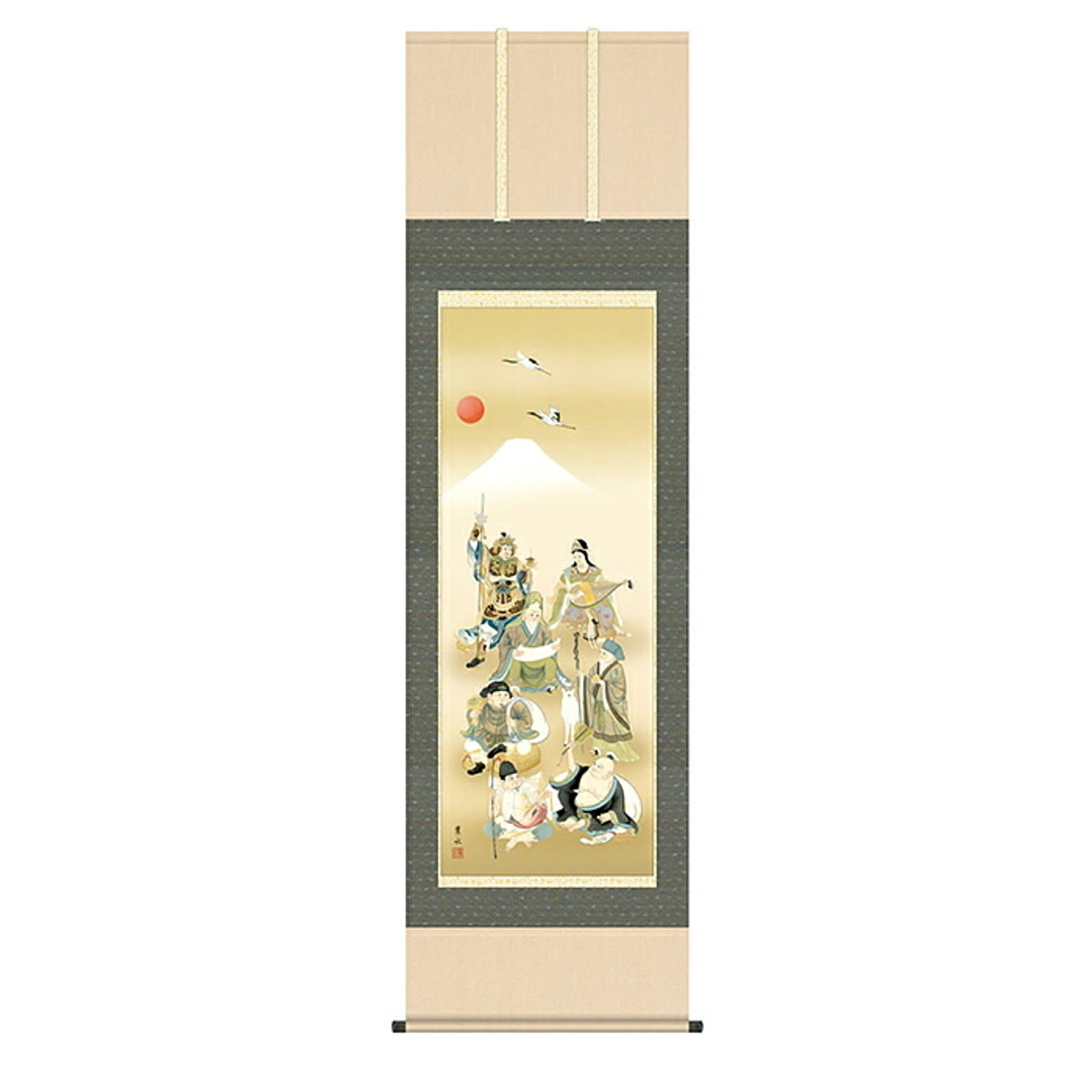掛け軸 七福神 緒方葉水 54.5x190cm 三幸