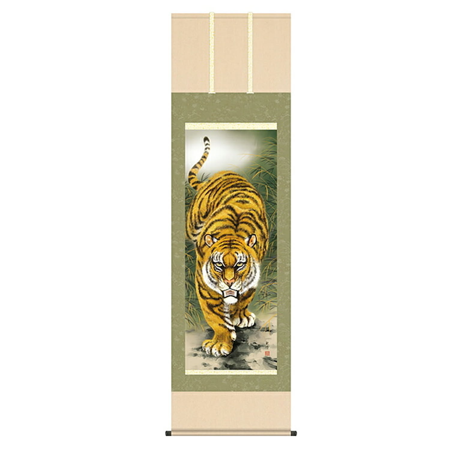 掛け軸 猛虎 山村観峰 54.5x190cm 三幸
