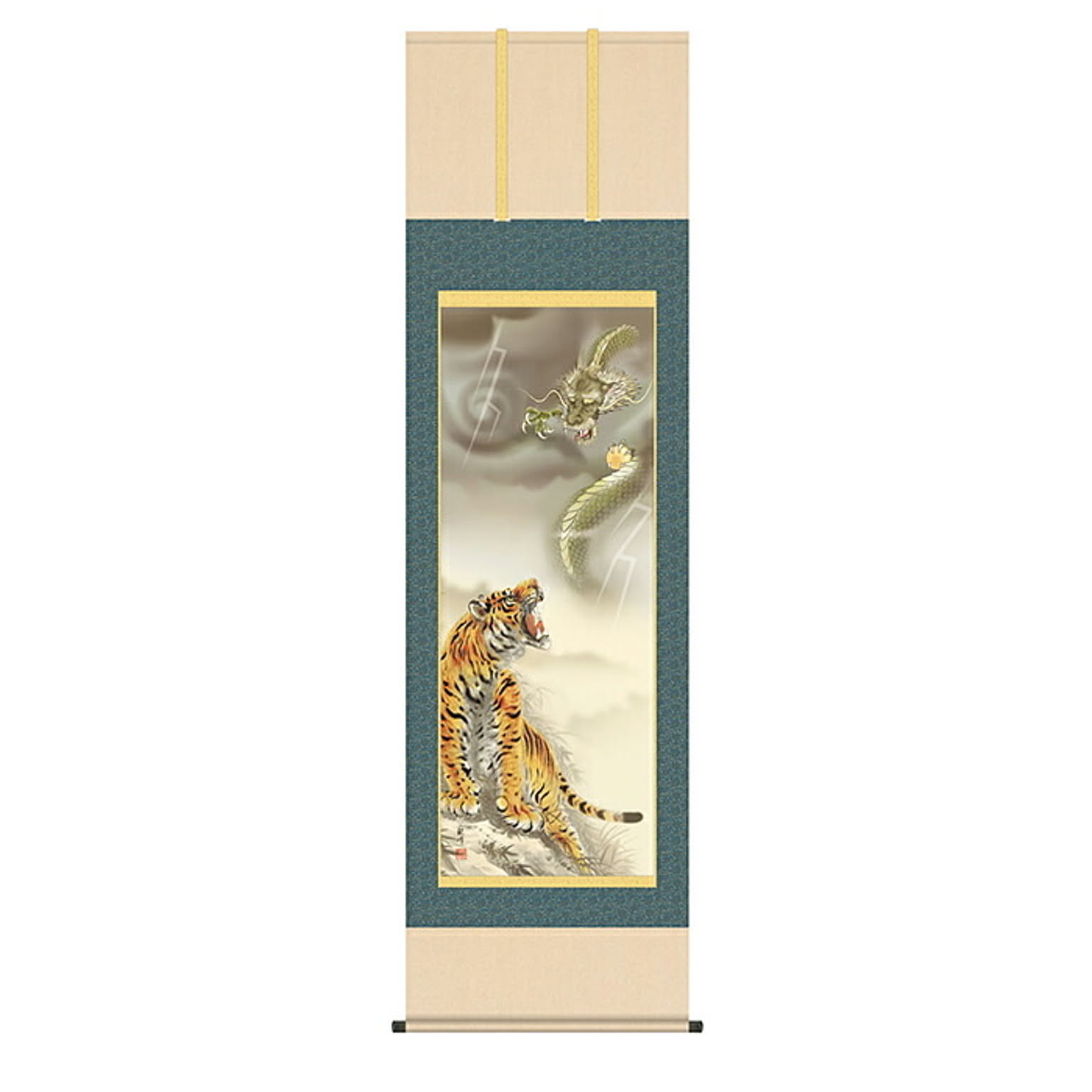 掛け軸 龍虎 山村観峰 54.5x190cm 三幸