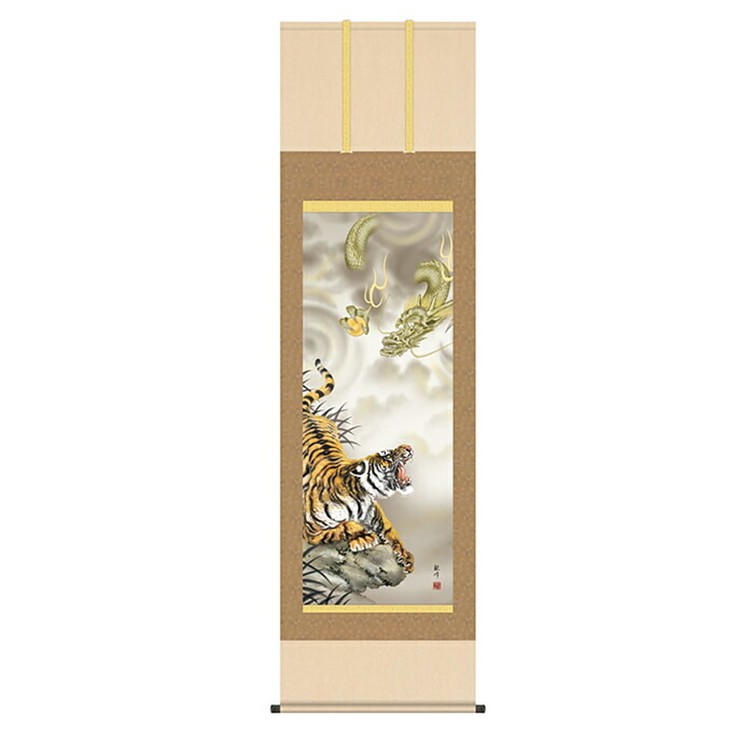 掛け軸 龍虎 山村観峰 54.5x190cm 三幸