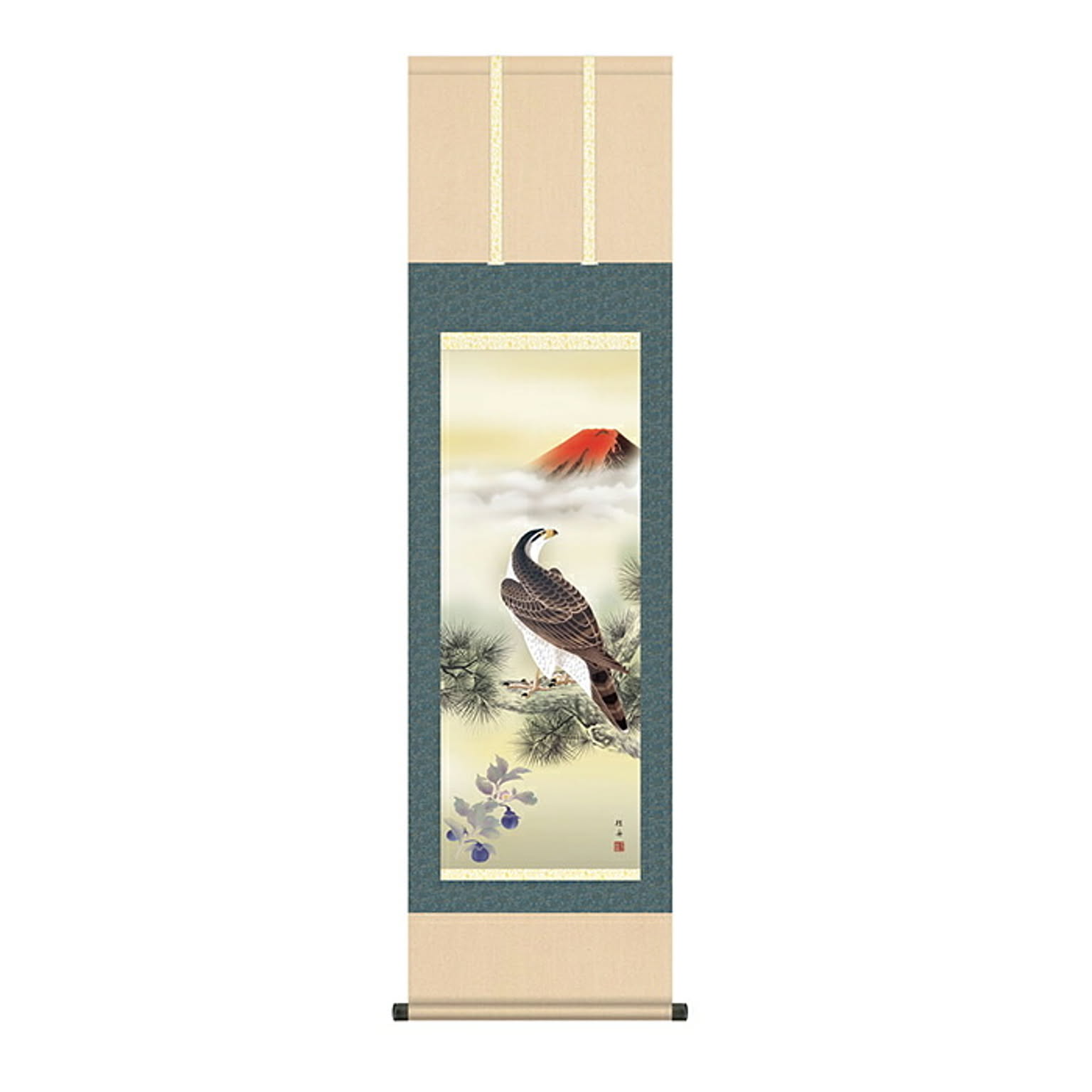 掛け軸 一富士二鷹三茄子 長江桂舟 44.5x164cm 三幸