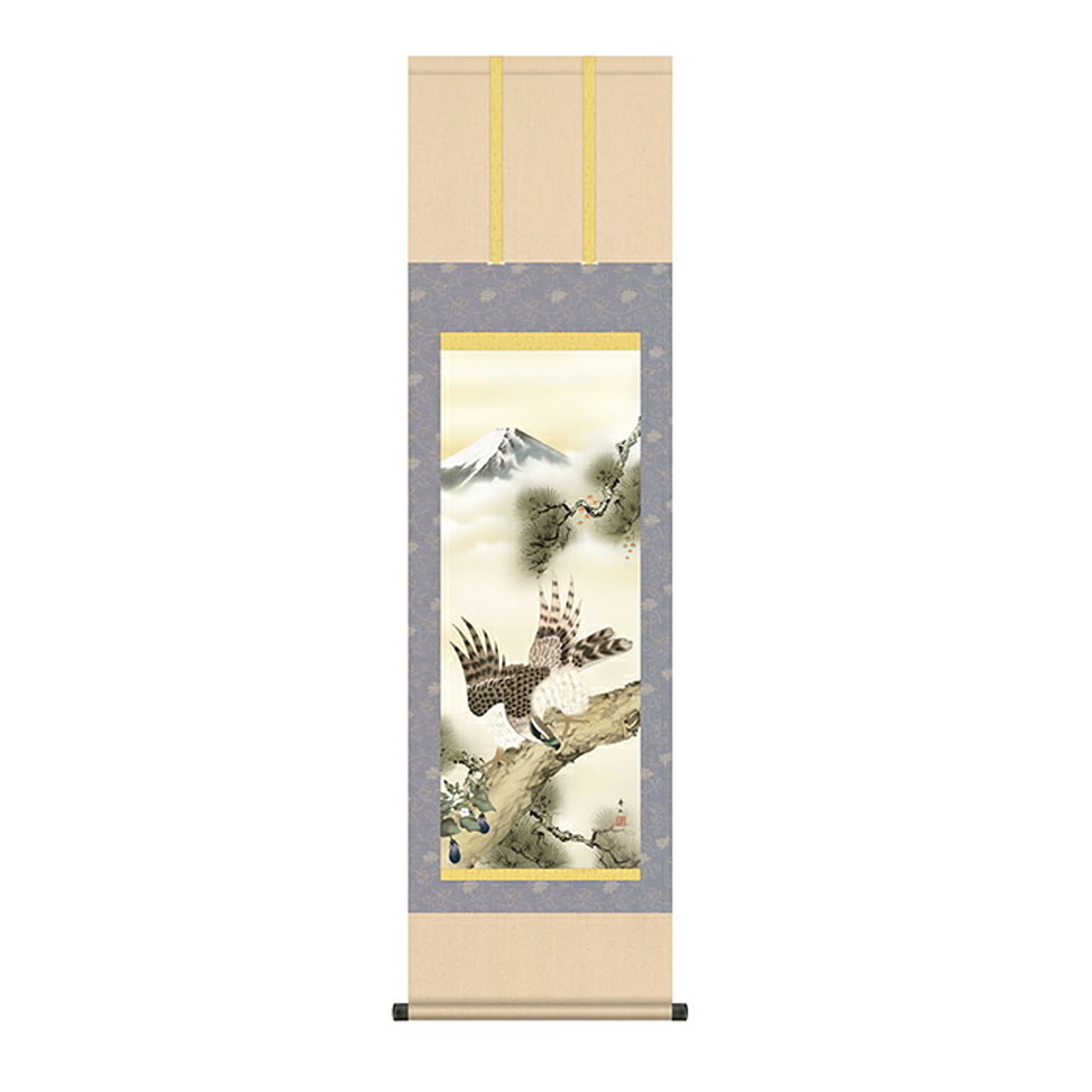 掛け軸 一富士二鷹三茄子 鈴村秀山 44.5x164cm 三幸