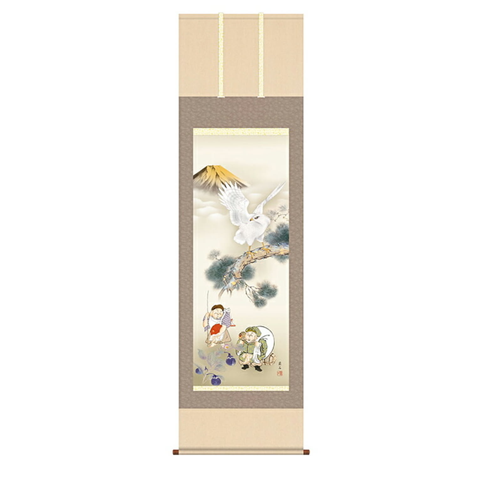 掛け軸 縁起初夢福徳図 高見蘭石 44.5x164cm 三幸