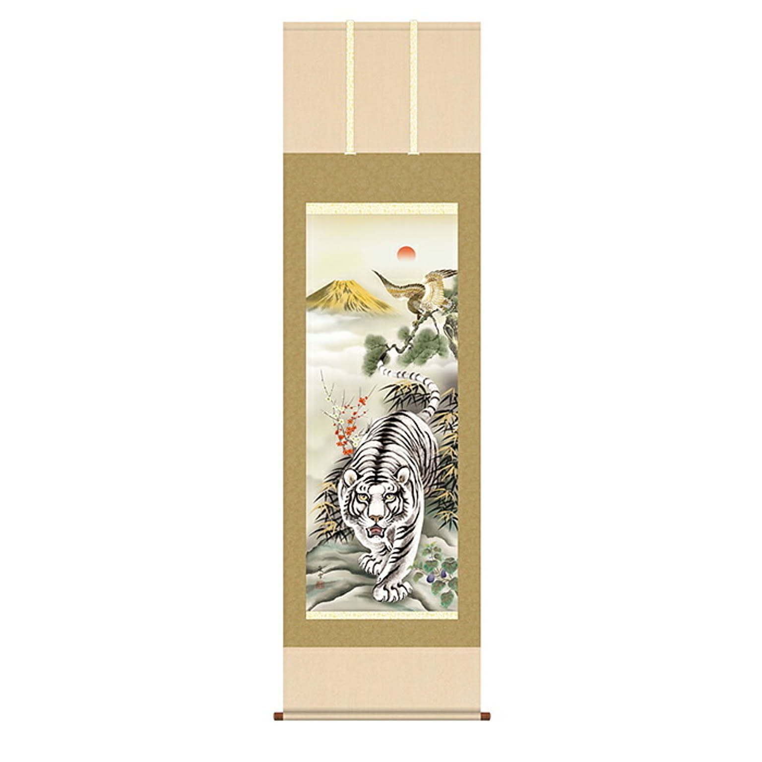 掛け軸 白虎初夢吉祥図 濱田嵐雪 44.5x164cm 三幸