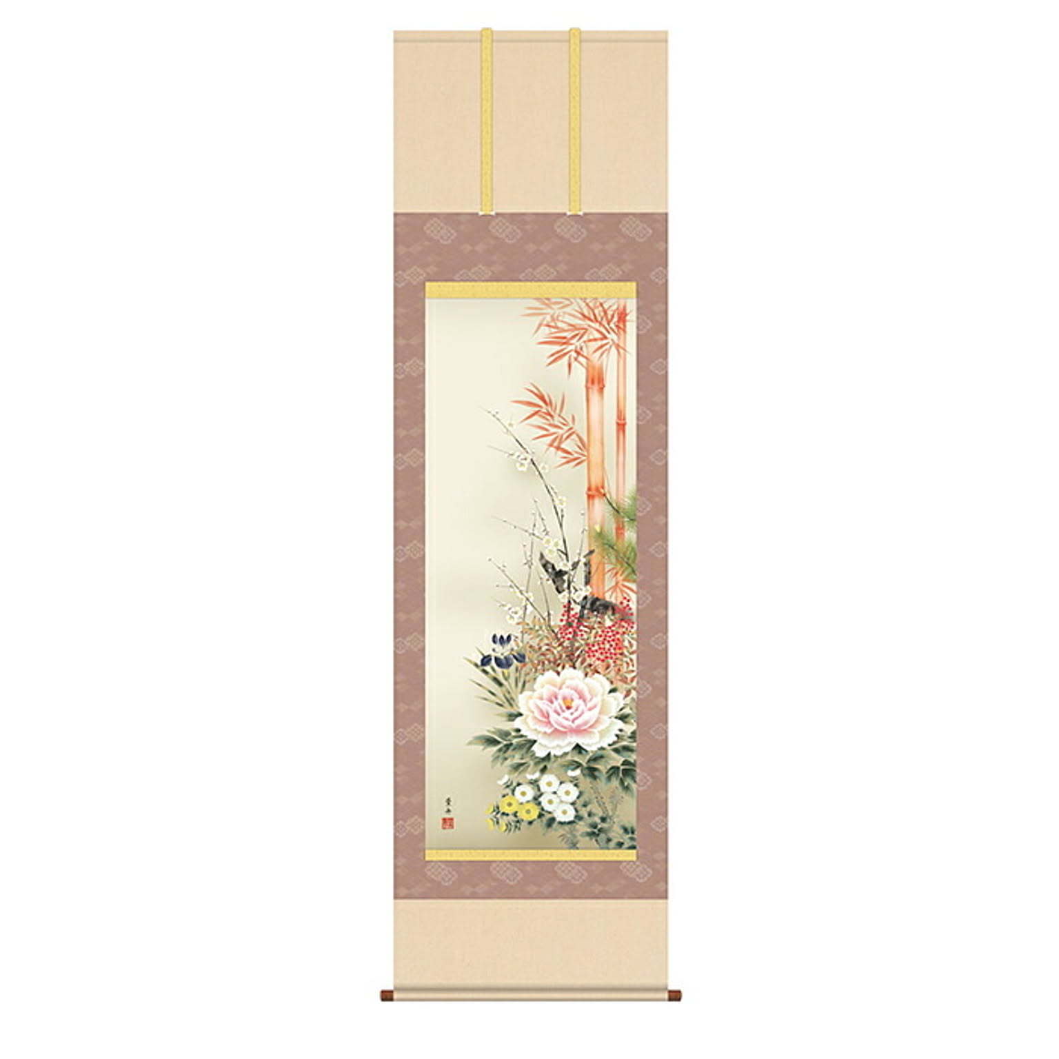 掛け軸 吉祥四季花図 根本葉舟 54.5x190cm 三幸