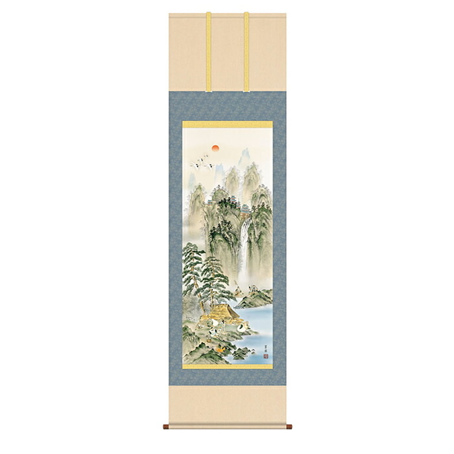 掛け軸 蓬莱七福四神図 石田芳園 44.5x164cm 三幸