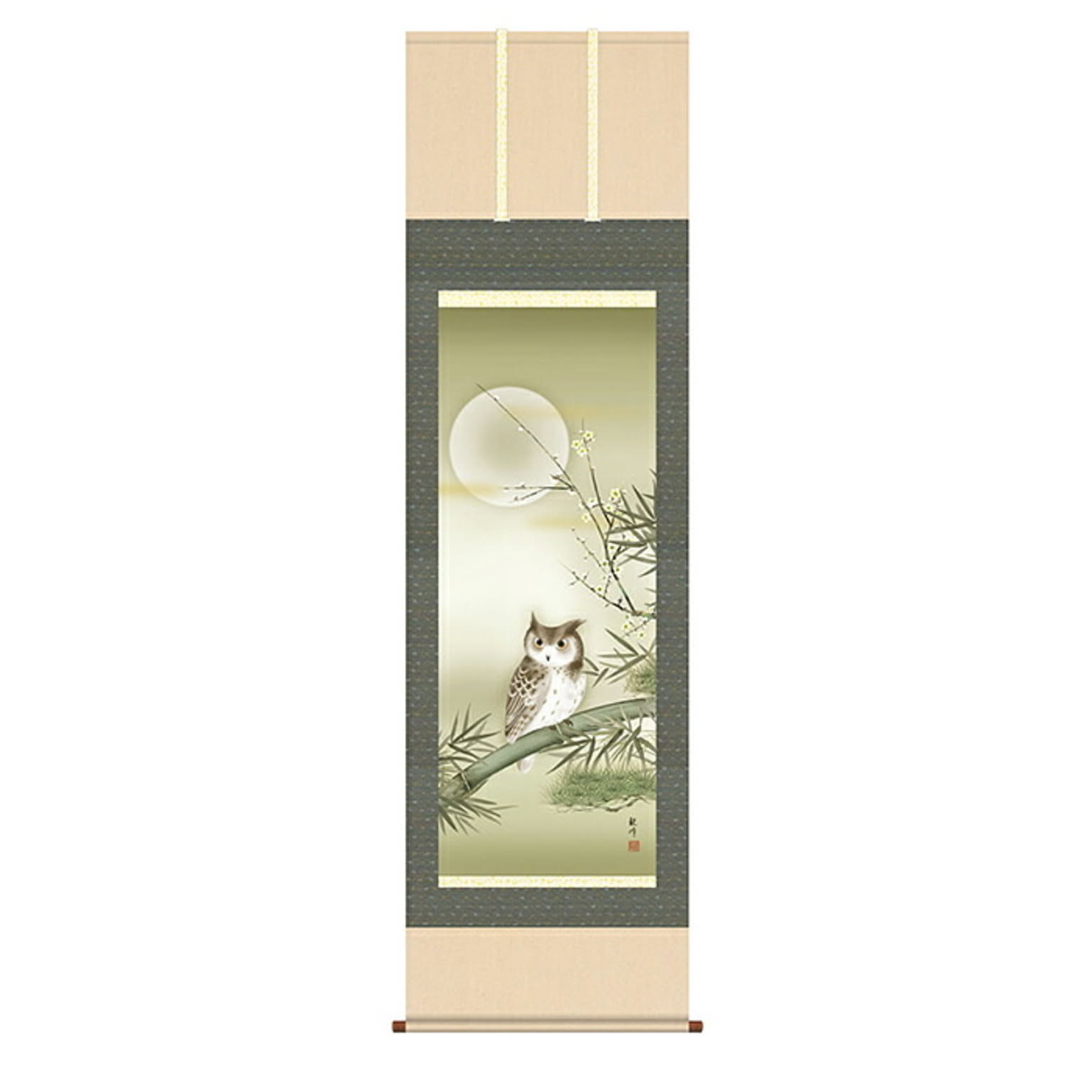 掛け軸 松竹梅梟図 山村観峰 54.5x190cm 三幸