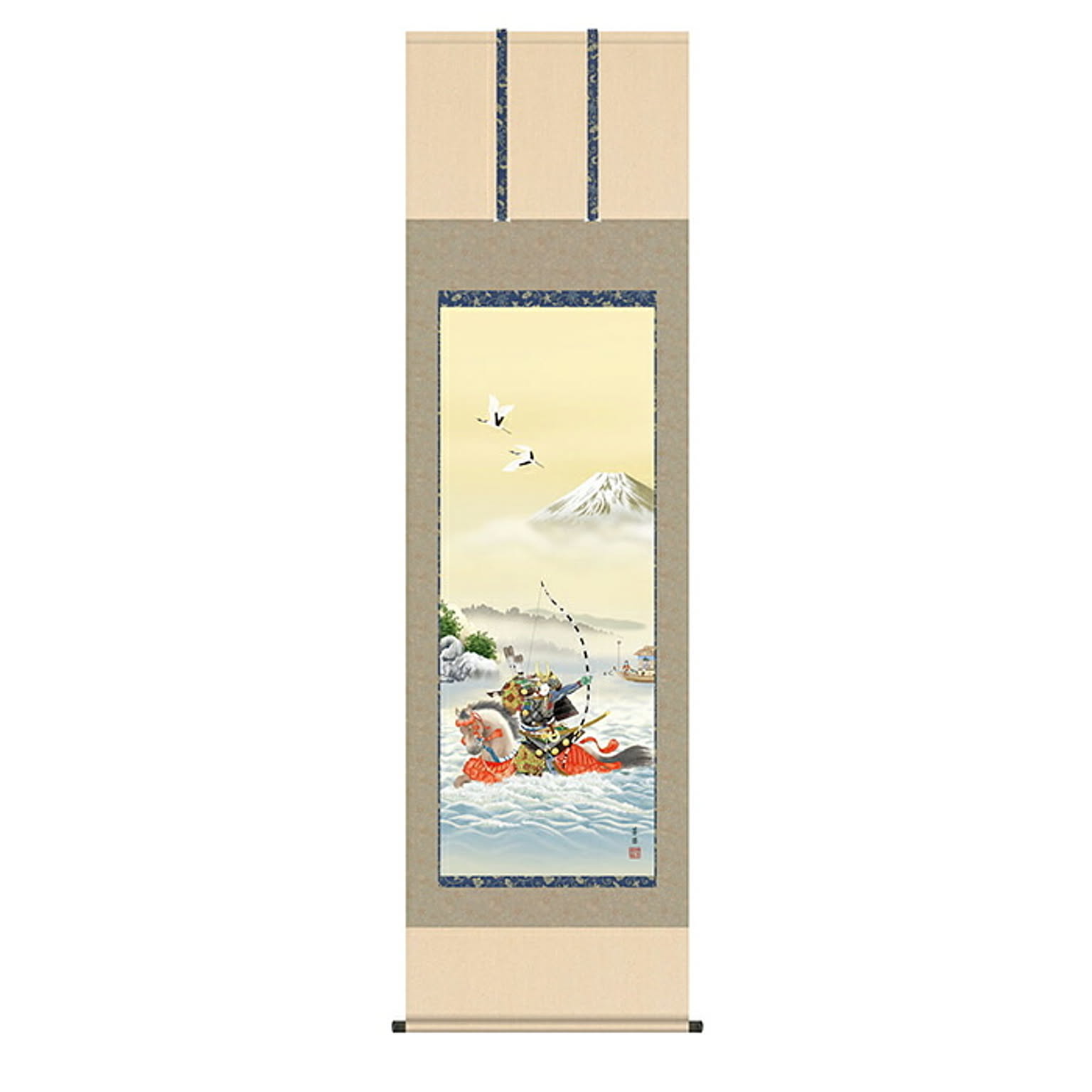掛け軸 波上武者 石田芳園 54.5x190cm 三幸