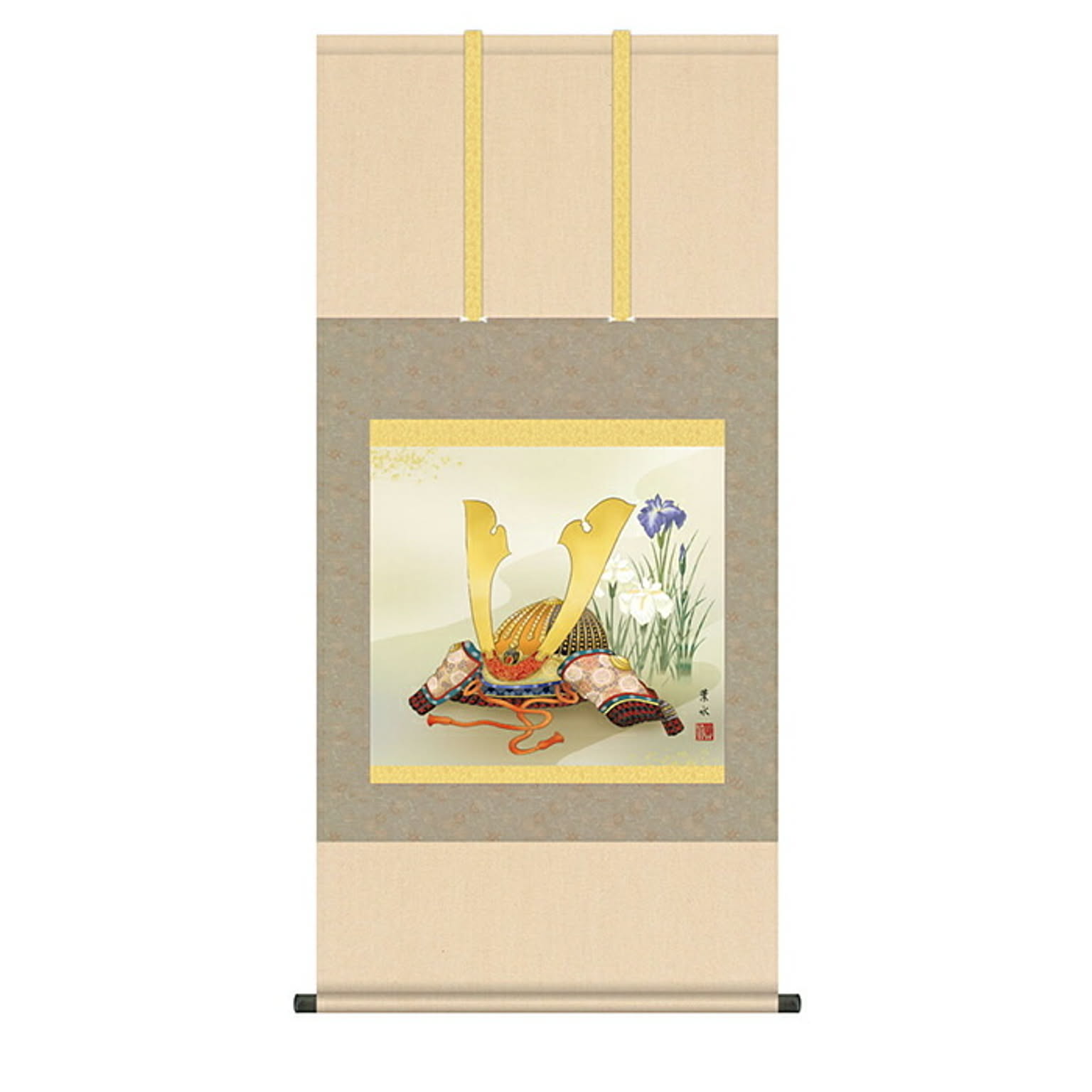 掛け軸 兜と菖蒲 緒方葉水 54.5x115cm 三幸