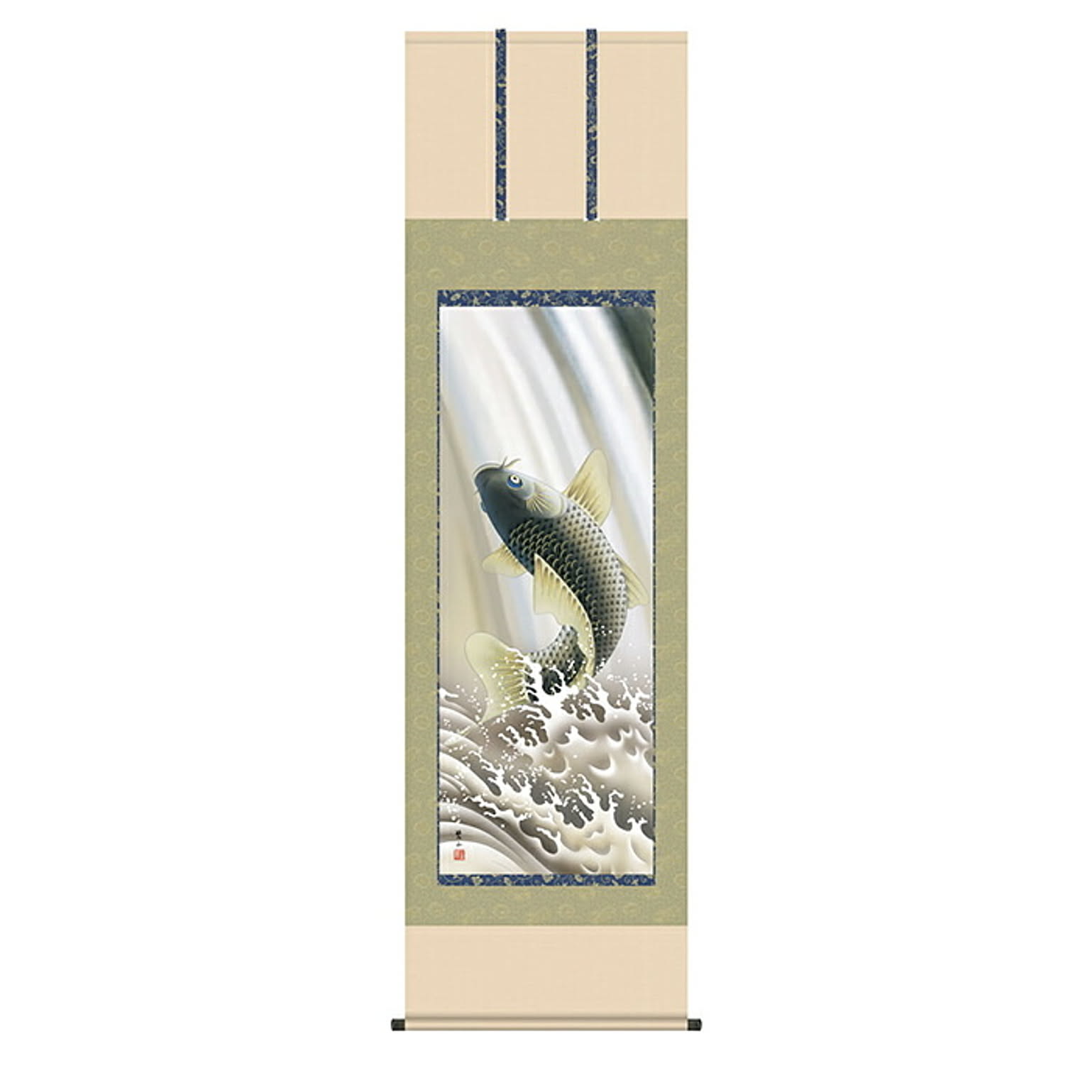 掛け軸 大昇鯉 唐沢碧山 54.5x190cm 三幸