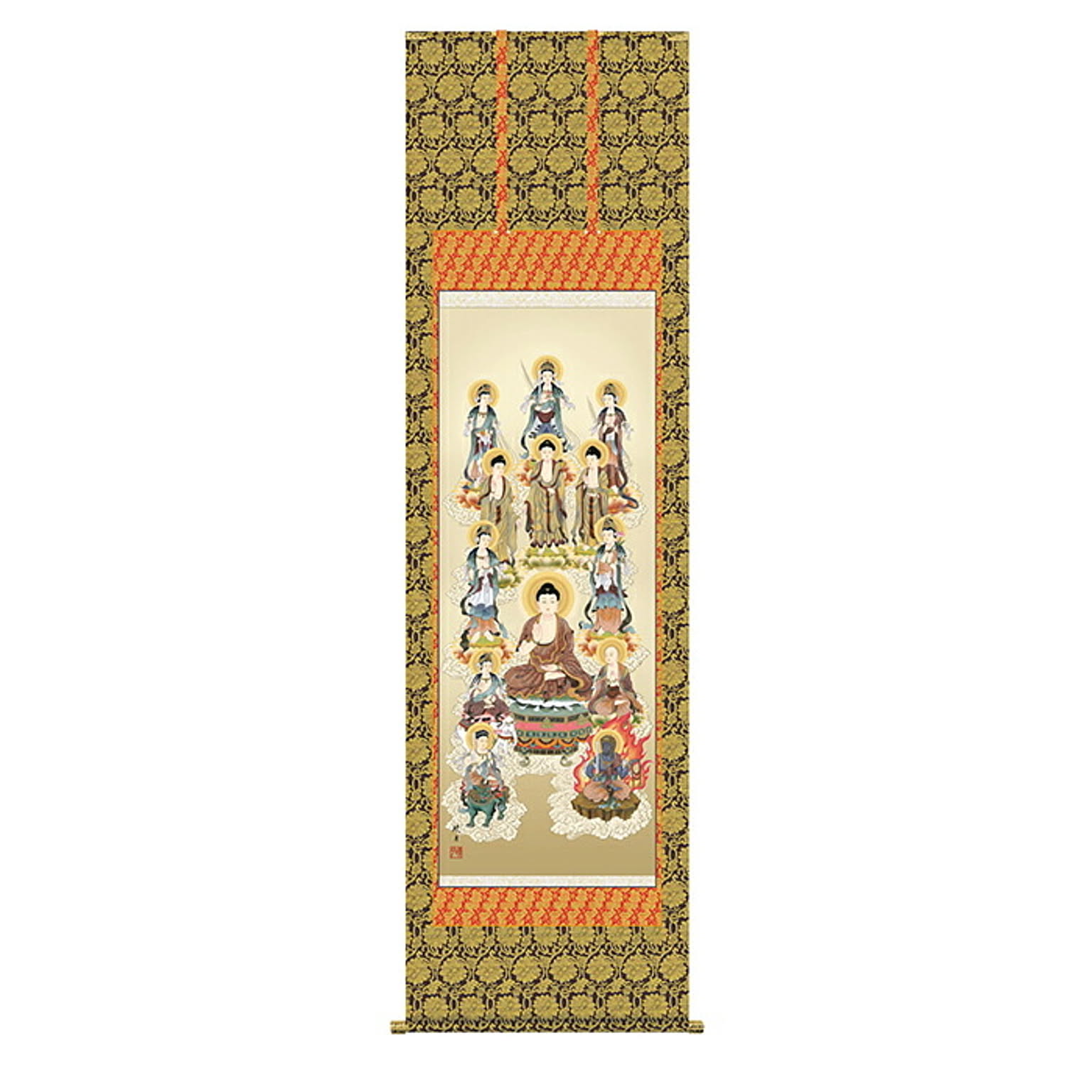 掛け軸 十三佛 永井暁月 54.5x190cm 三幸