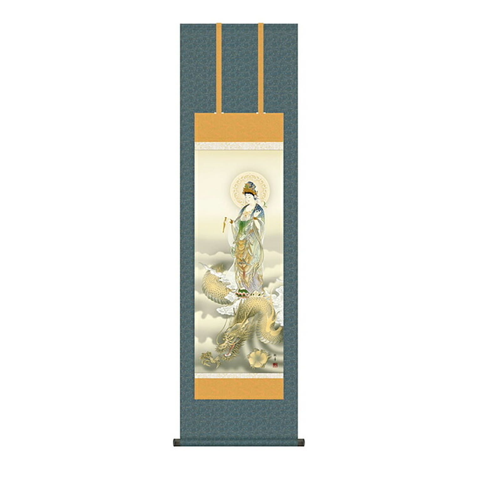 掛け軸 龍上観音 北条裕華 44.5x164cm 三幸
