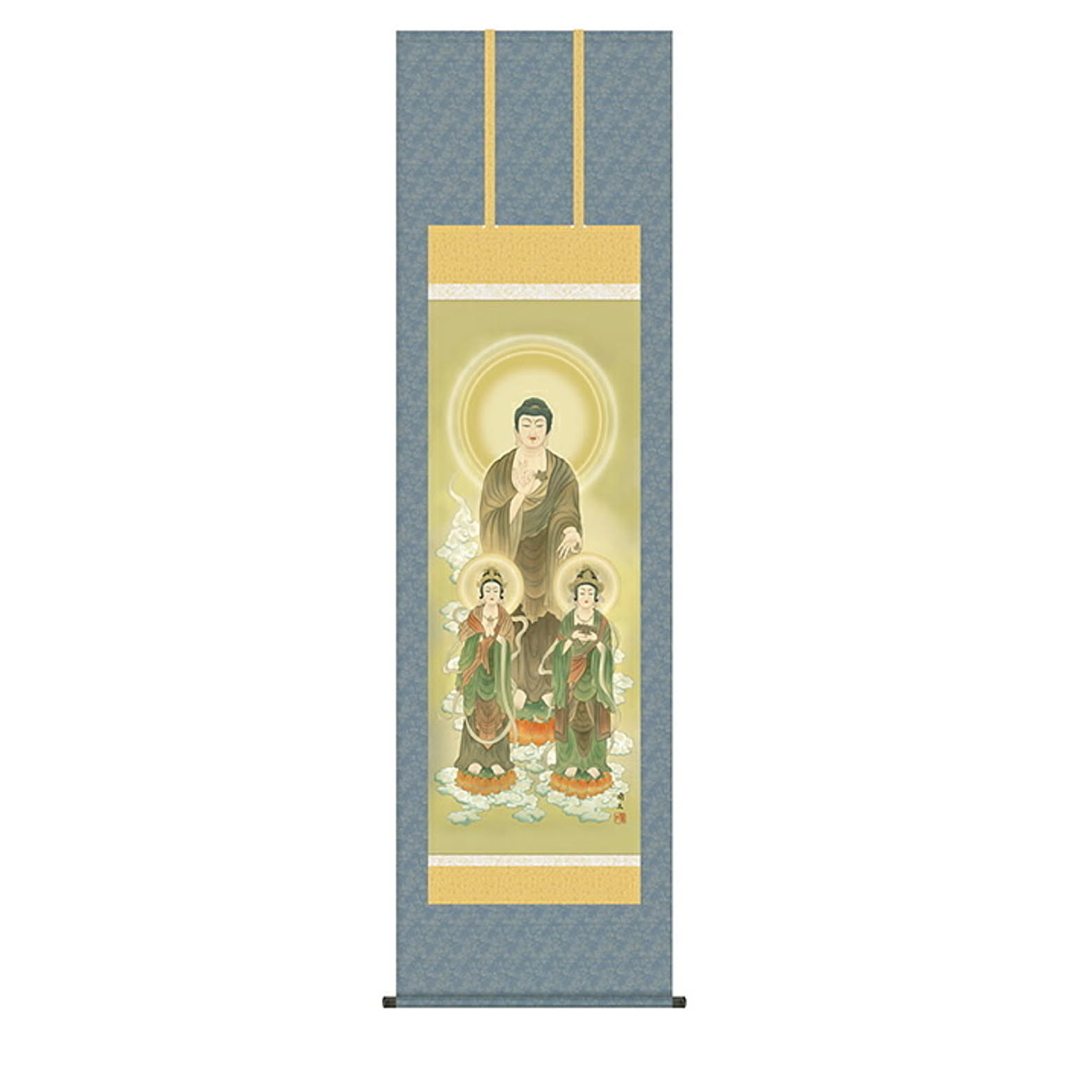 掛け軸 阿弥陀三尊佛 高見蘭石 54.5x190cm 三幸