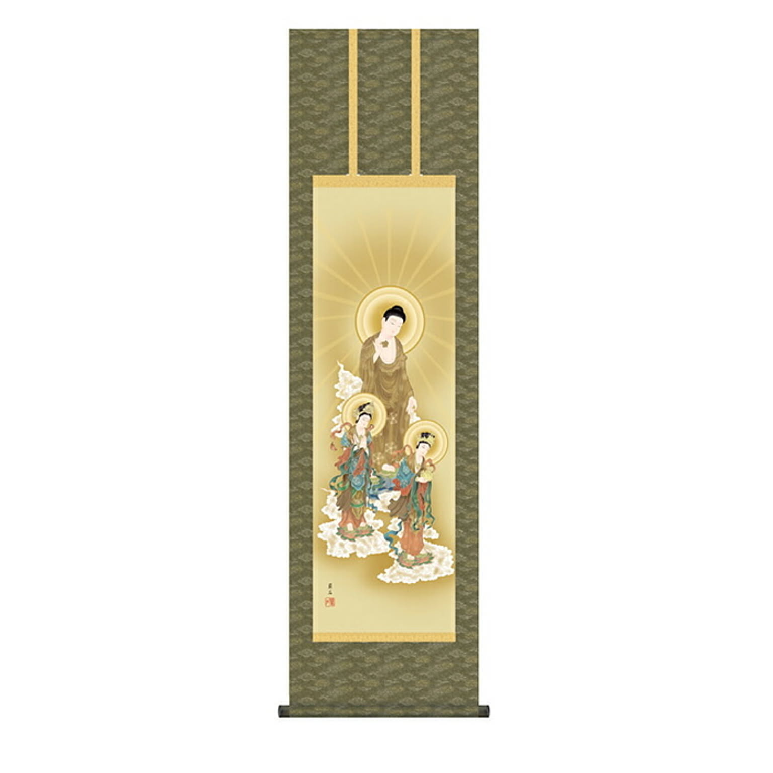 掛け軸 阿弥陀三尊佛 高見蘭石 44.5x164cm 三幸