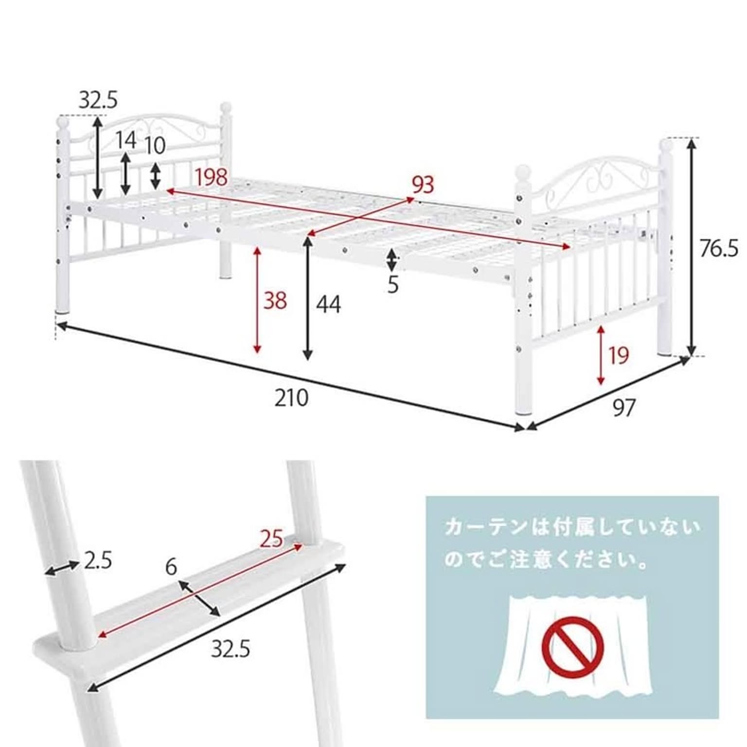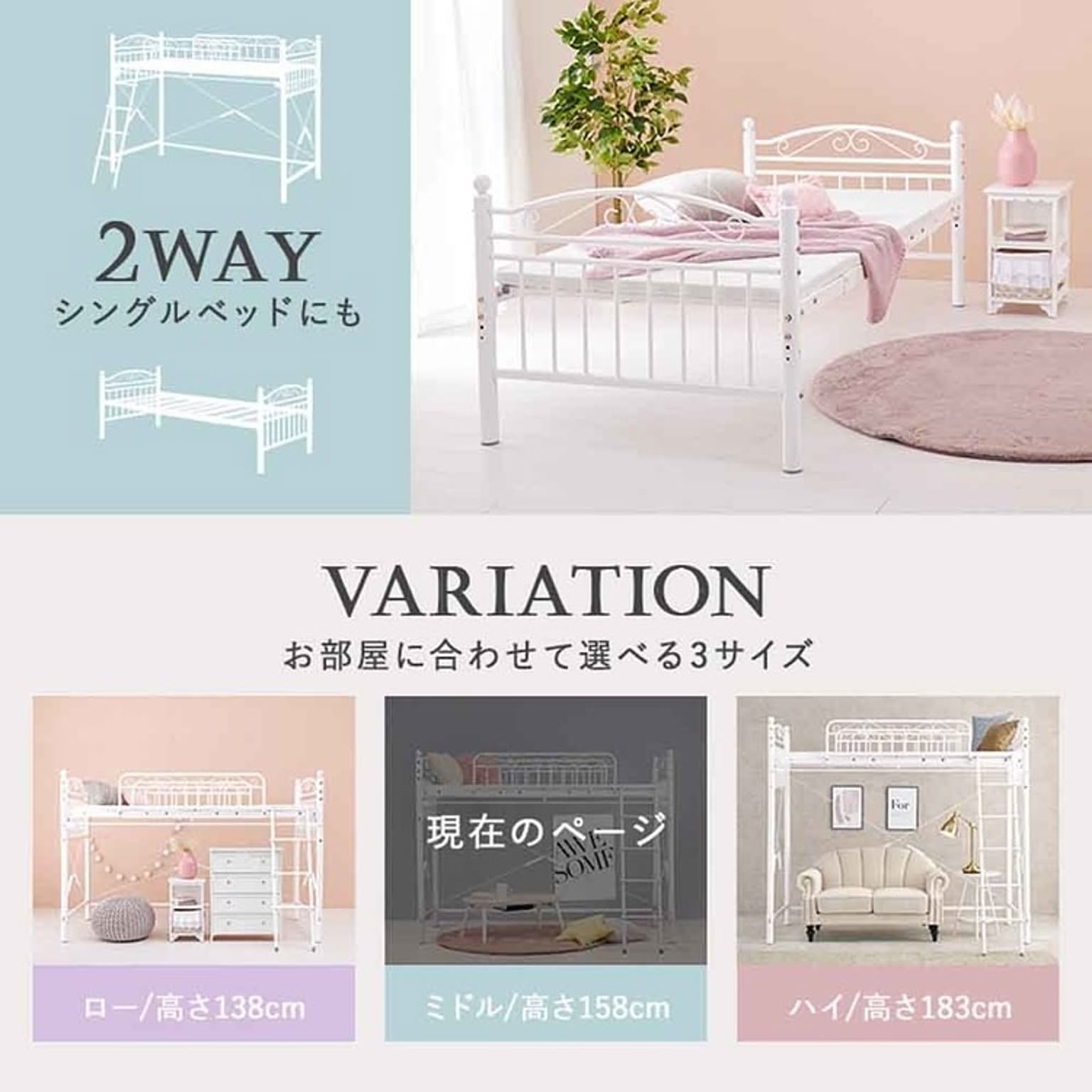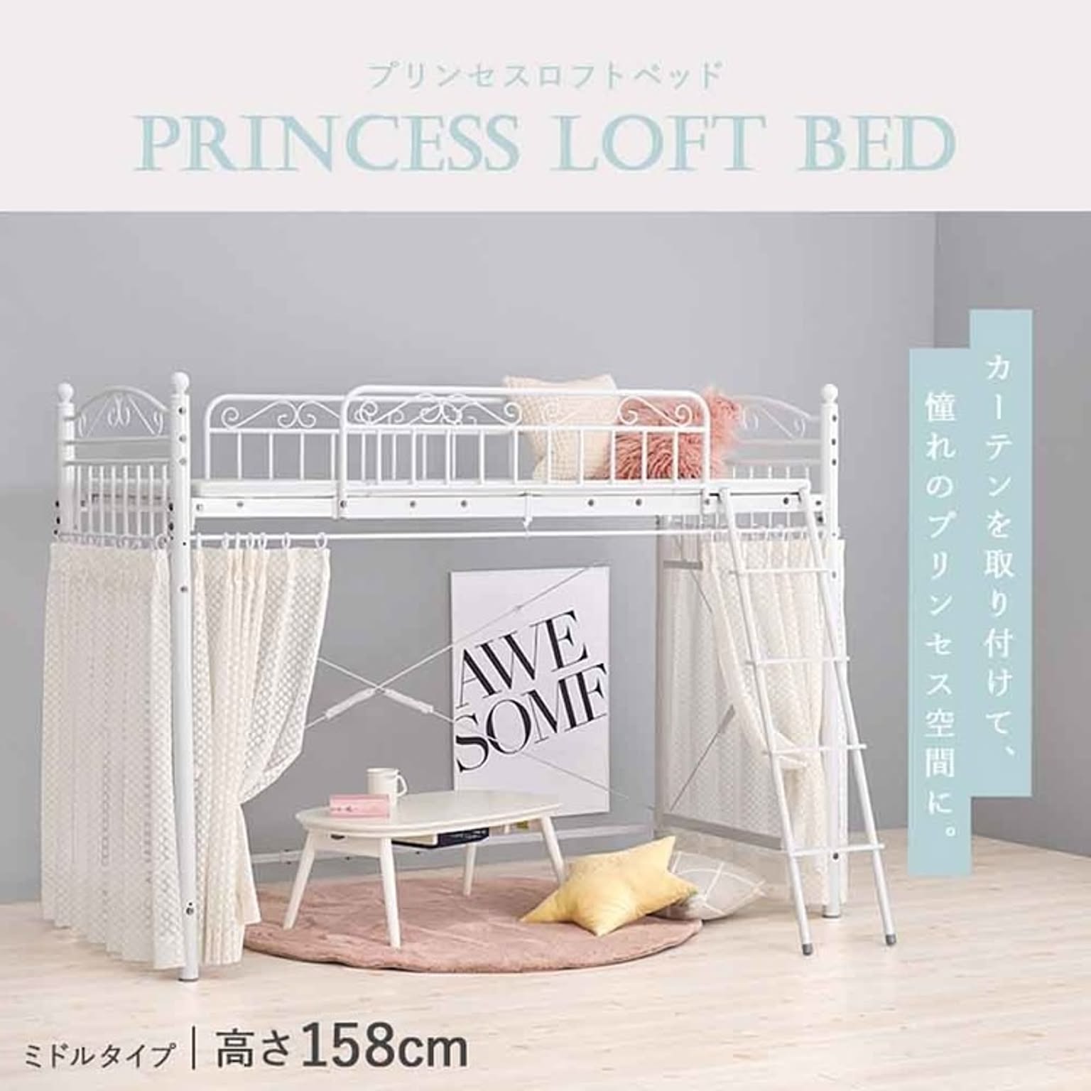 まるでプリンセスが住むお城のようなエレガントなデザインのパイプロフトベッドです。 市販のカーテンを取り付けて使え、ひとりでゆったり過ごせる隠れ家のような空間を作れるミドルタイプ。 ★お客様組立★ ※こちらの商品はお取り寄せ商品のため、初期不良以外の返品・交換は承れませんので、あらかじめご了承ください。 ●商品サイズ(cm) 幅約97×奥行約210×高さ約158 ●商品重量 約51kg ●主材 スチールパイプ ●組立の有無 有り ●組立時間 180分(2名)