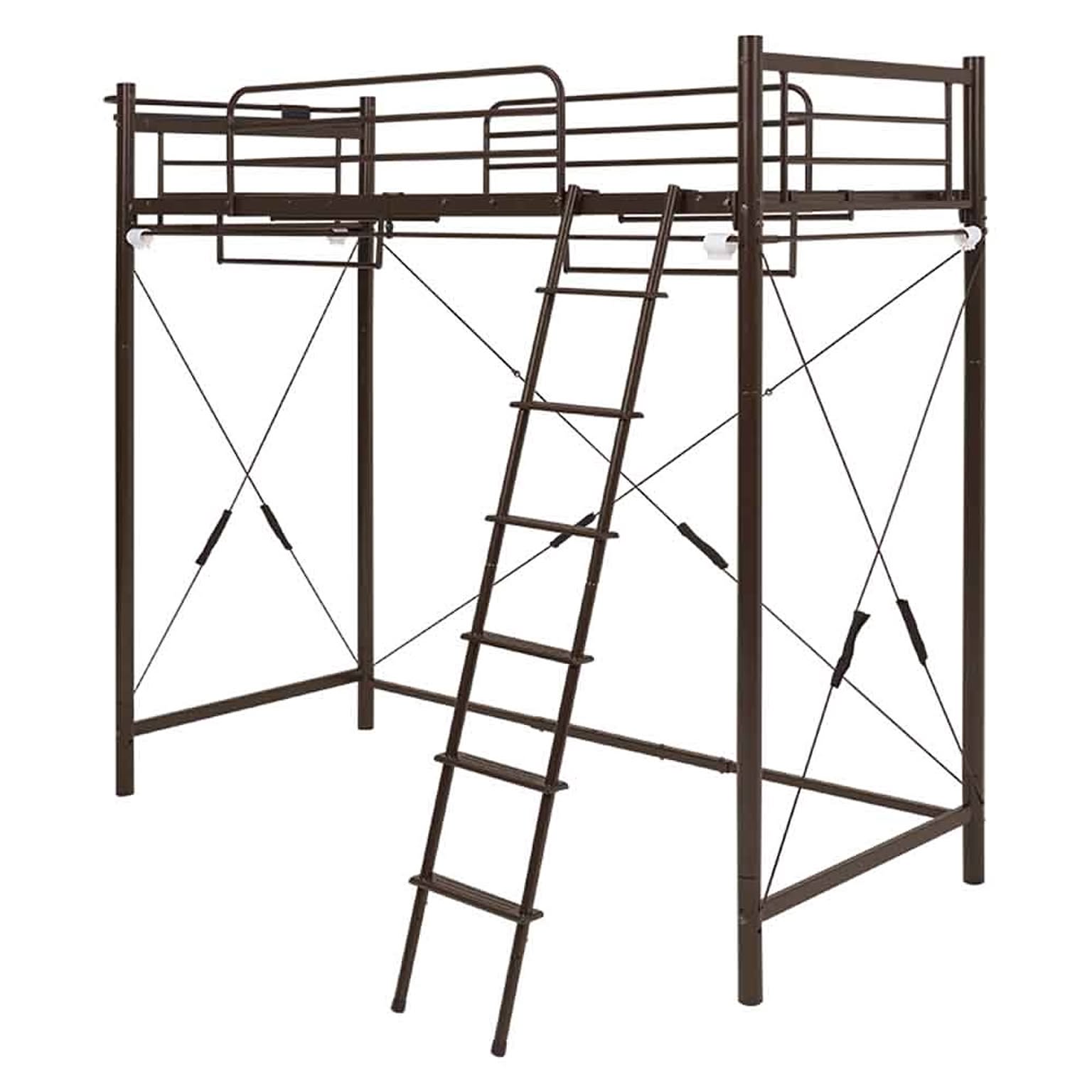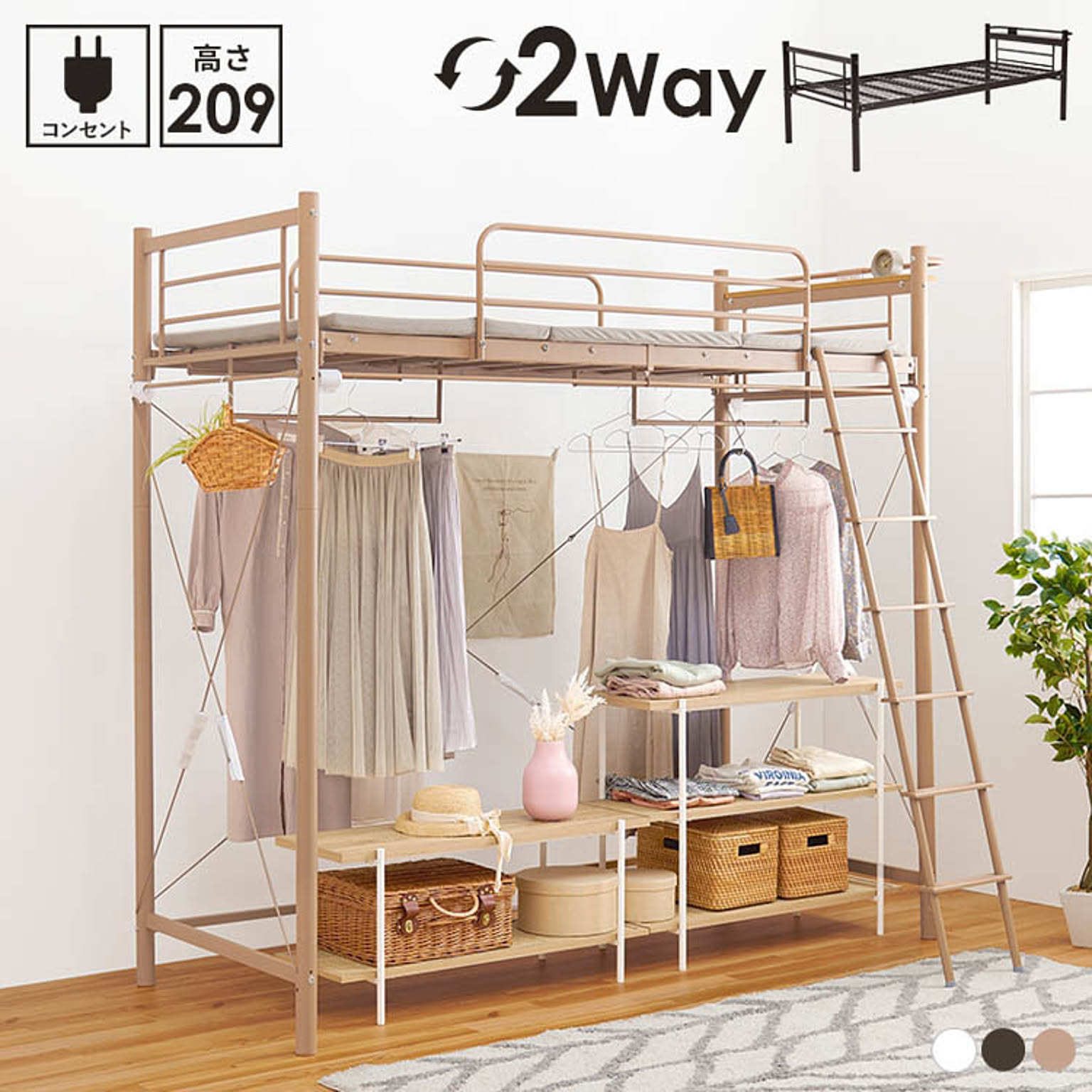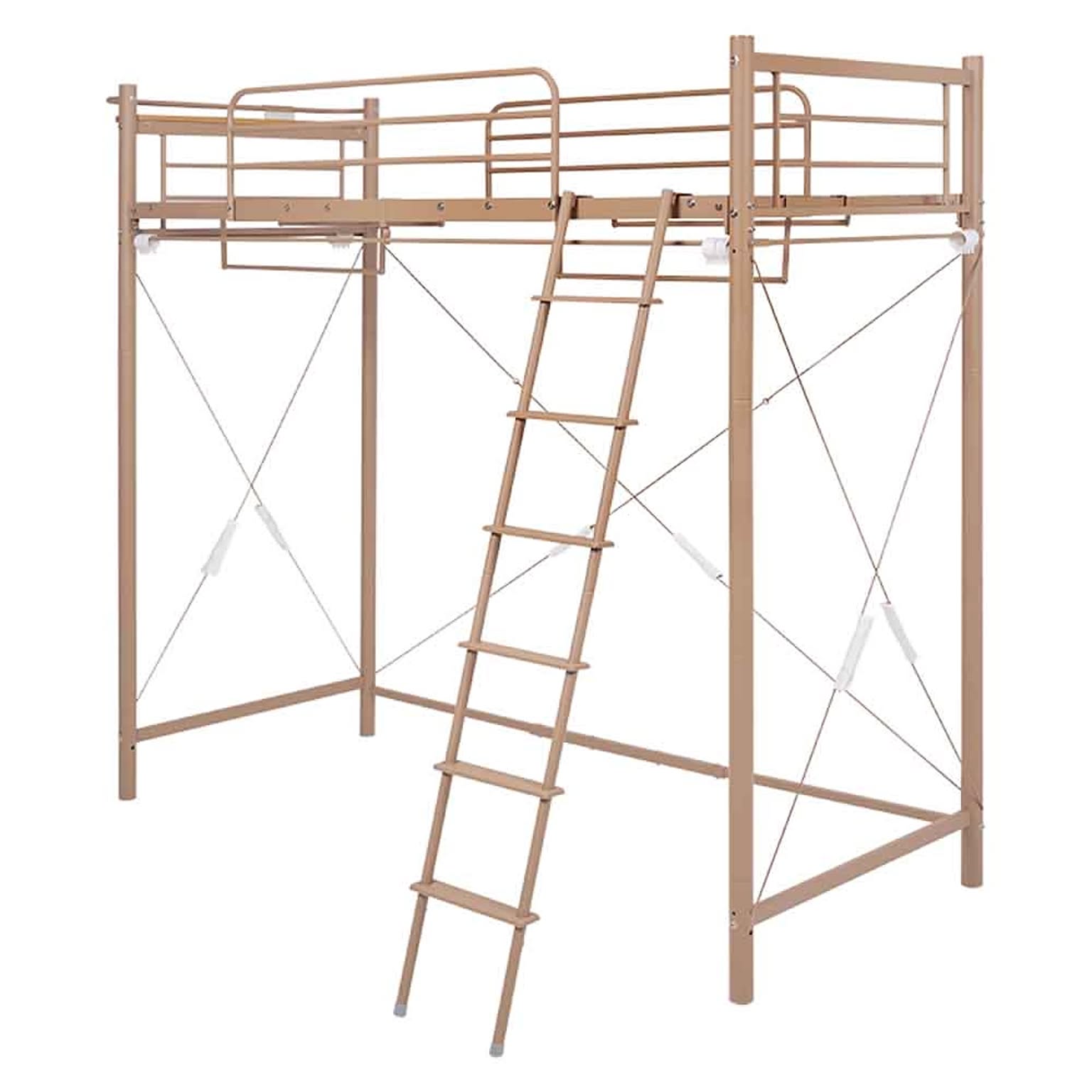 ベッド下の空間に市販のカーテンを取り付け可能なパイプロフトベッド。