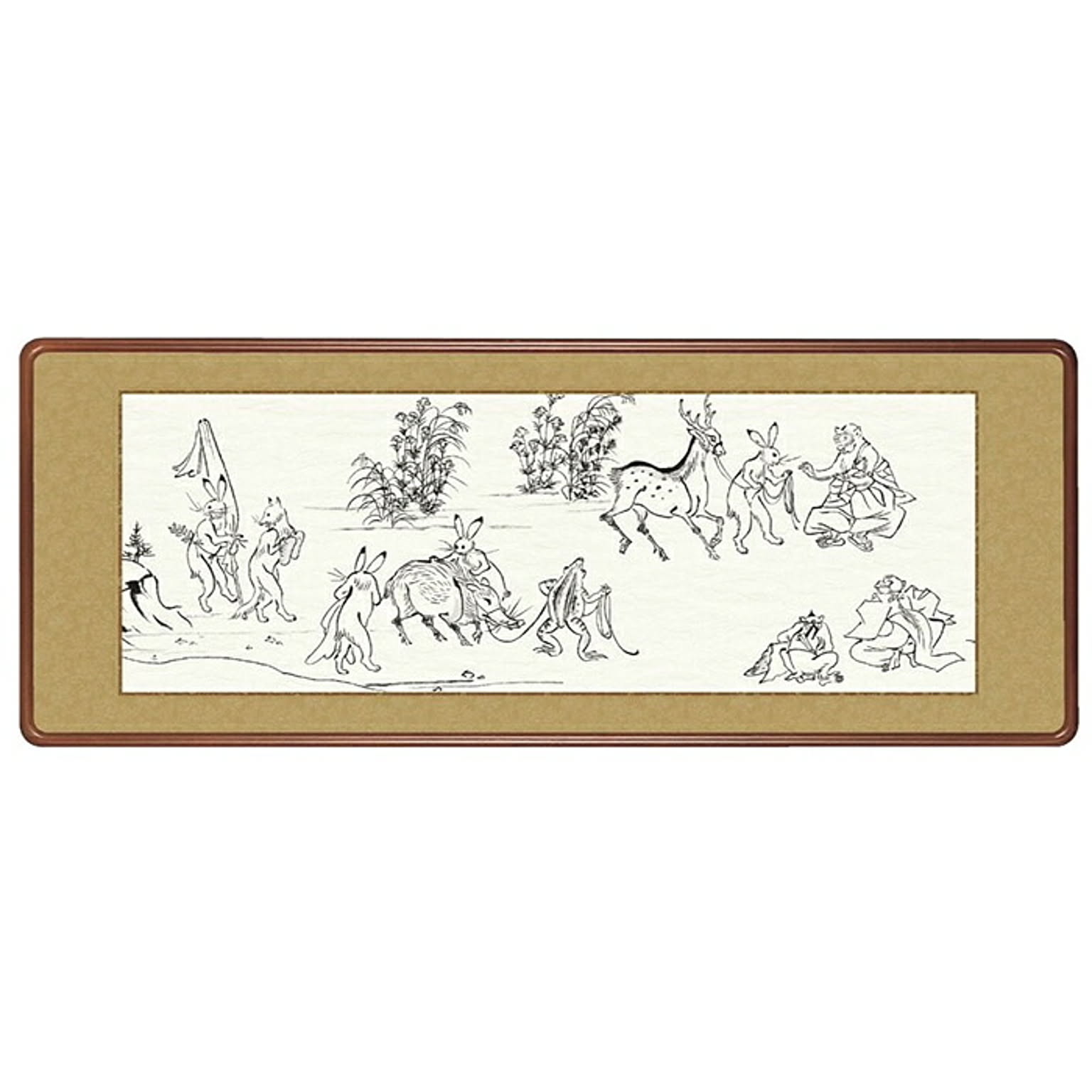 三幸 SANKOH 兎と蛙の相撲や追いかけっこをする猿など、躍動的な動物たち描いた絵巻「国宝 鳥獣人物戯画」。日本絵画史の一大傑作として知られ、甲巻の中でも最も有名な場面を掛軸にまとめた作品です。 本誌:新絹本 額:隅丸和額・前面アクリルカバー付 ※ご同意をお願いします 商品画像は撮影環境やお客様の環境により実物とは異なって見える場合がございます。画像と比べて明るさや光沢、質感等が全く違うと感じられる場合もございます。これらによる返品交換は固くお断りします。 ※メーカー直送商品
