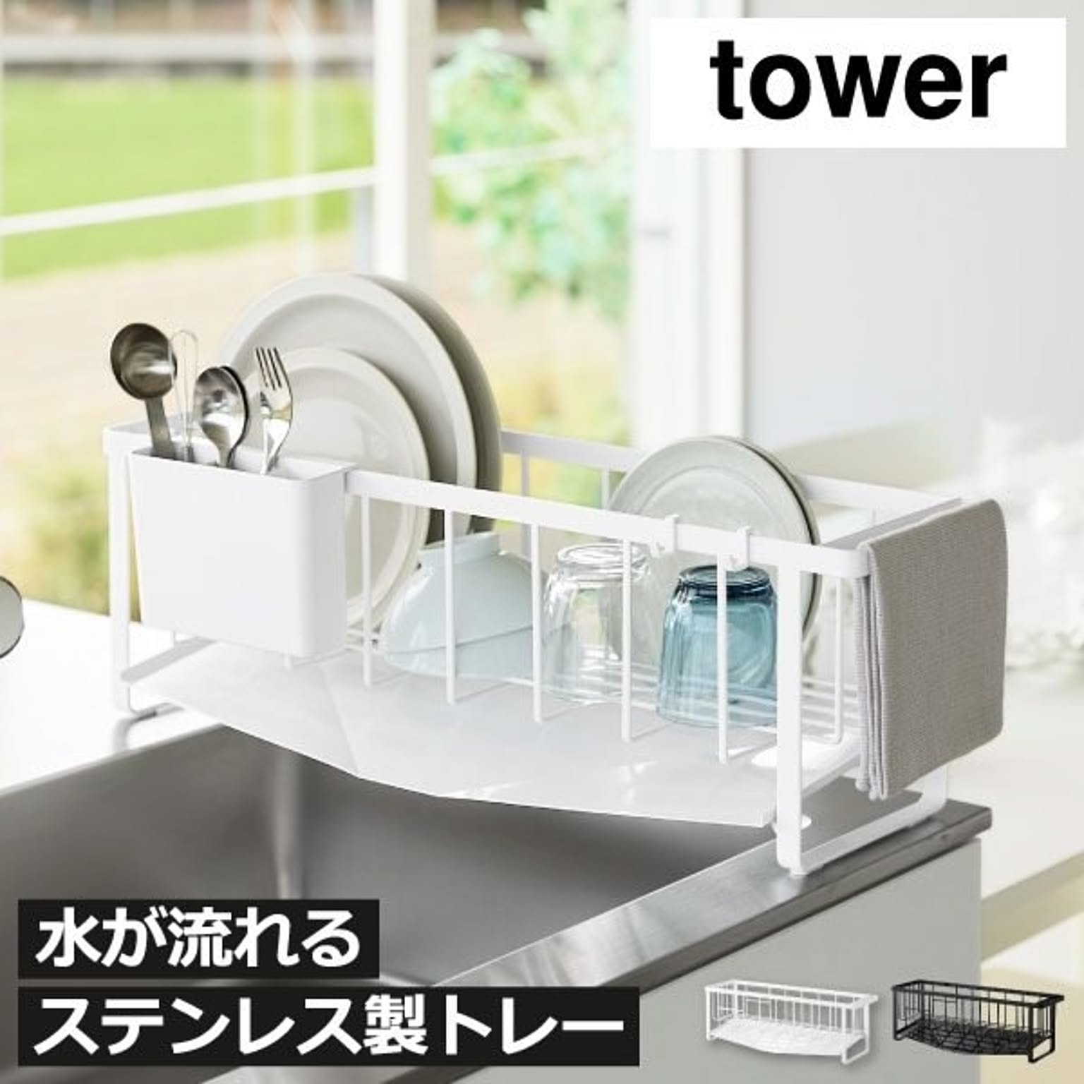山崎実業 水切れの良いスリム水切りワイヤーバスケット タワー tower
