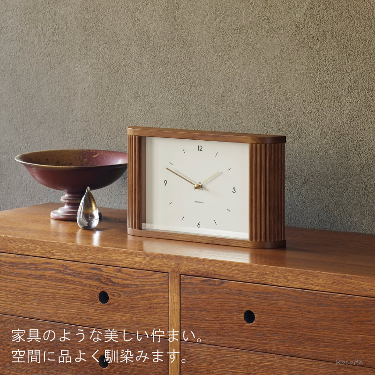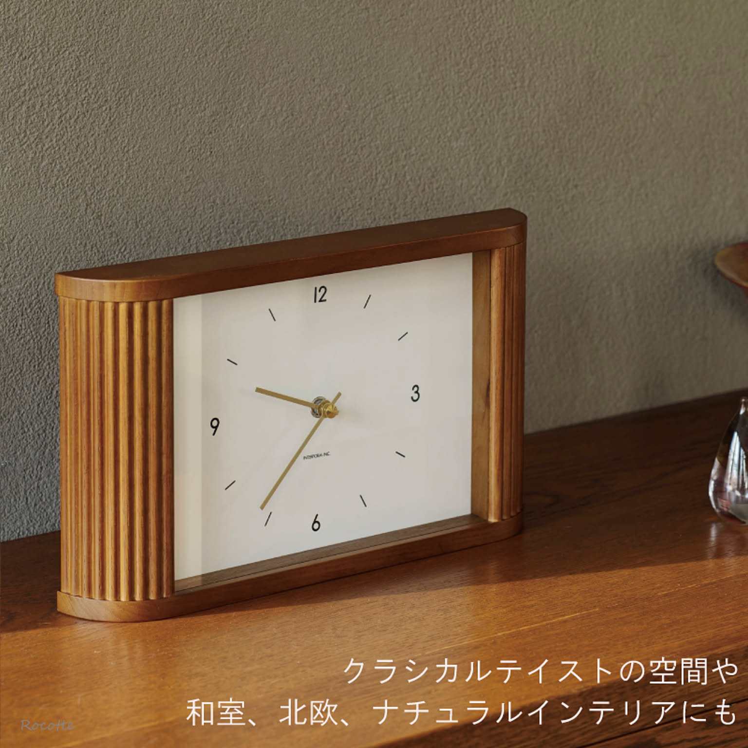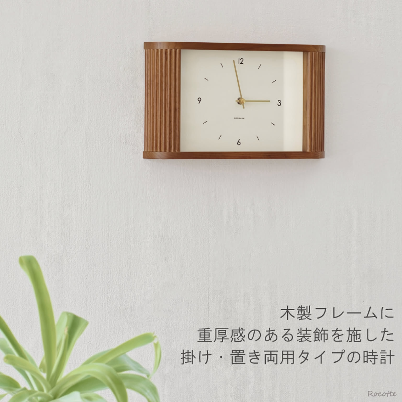 木をふんだんに使用し、重厚感のある装飾を施した時計。