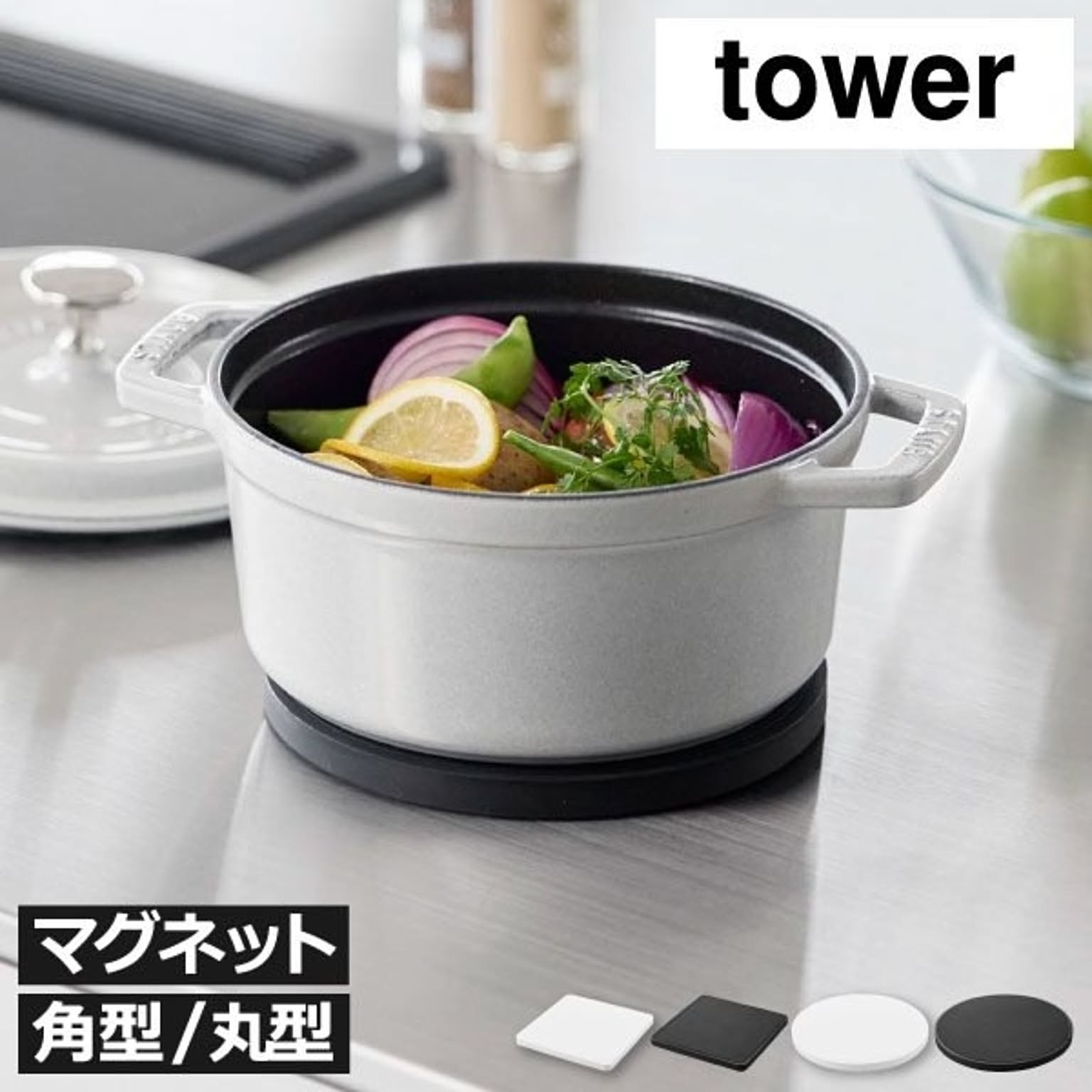 山崎実業 マグネットシリコーン鍋敷き タワー 角型 丸型 tower