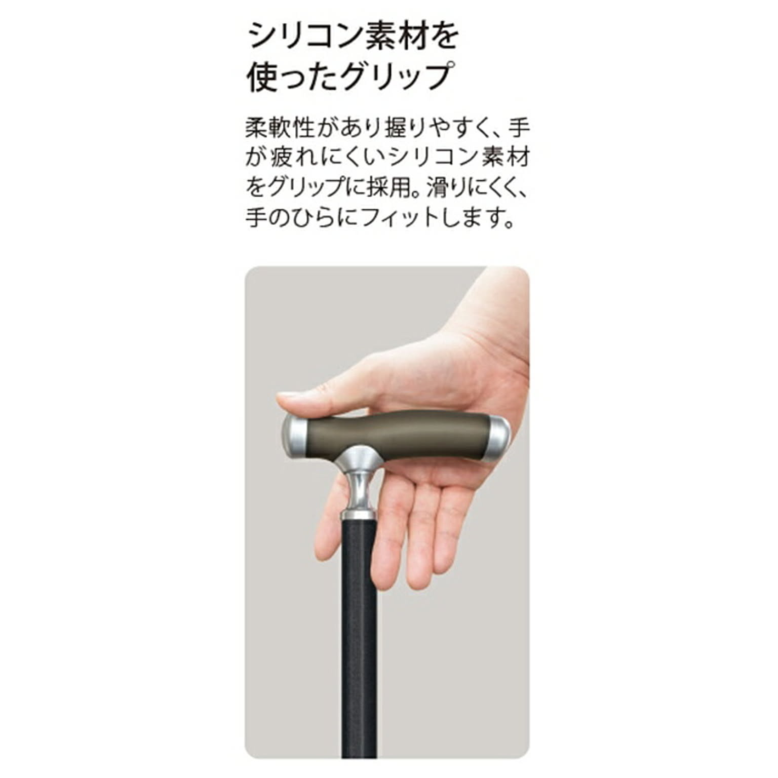 杖 やわらかグリップステッキ 伸縮 幅13x奥行3.5x高さ73〜95.5cm フジホーム