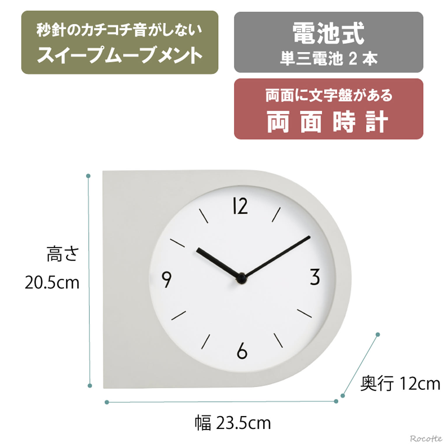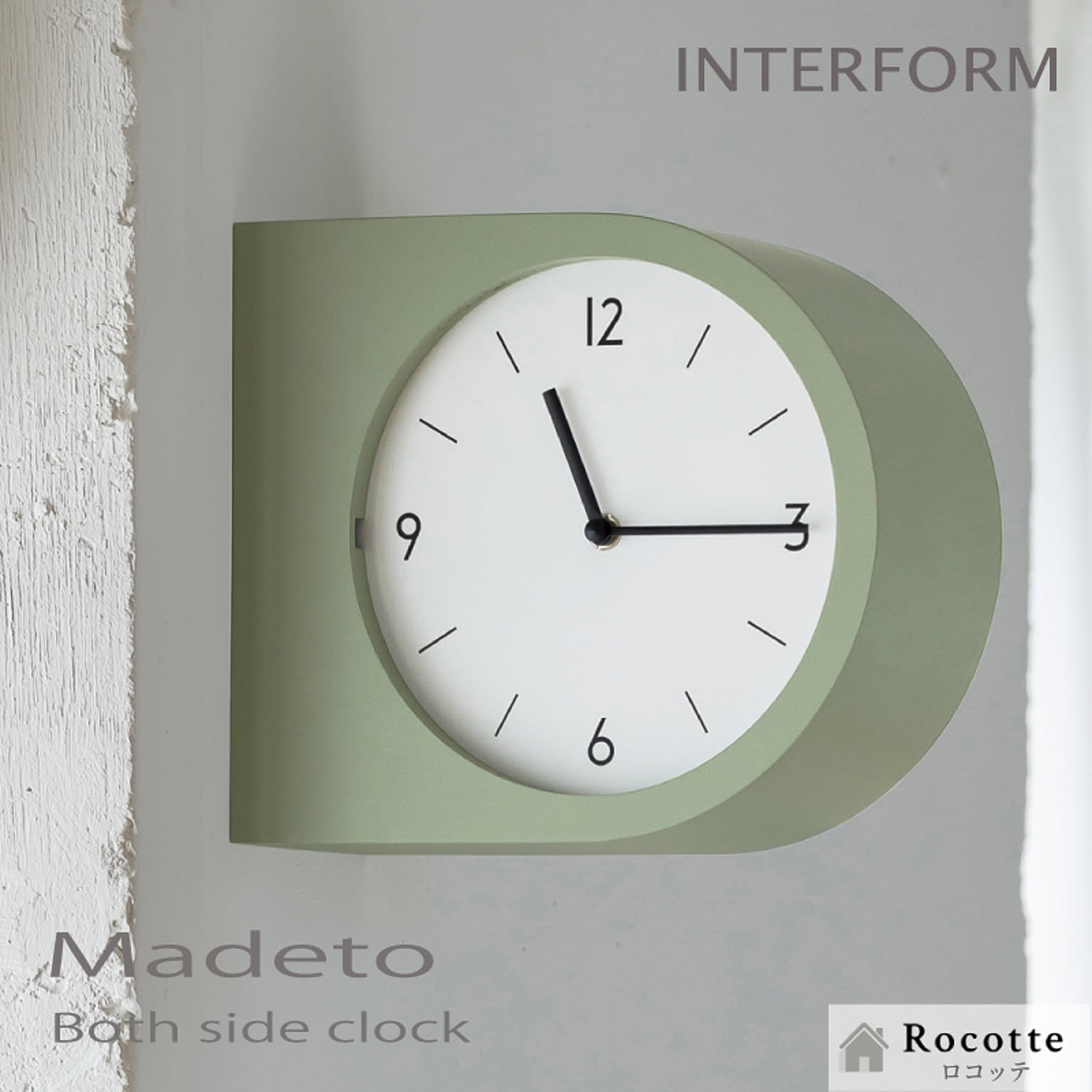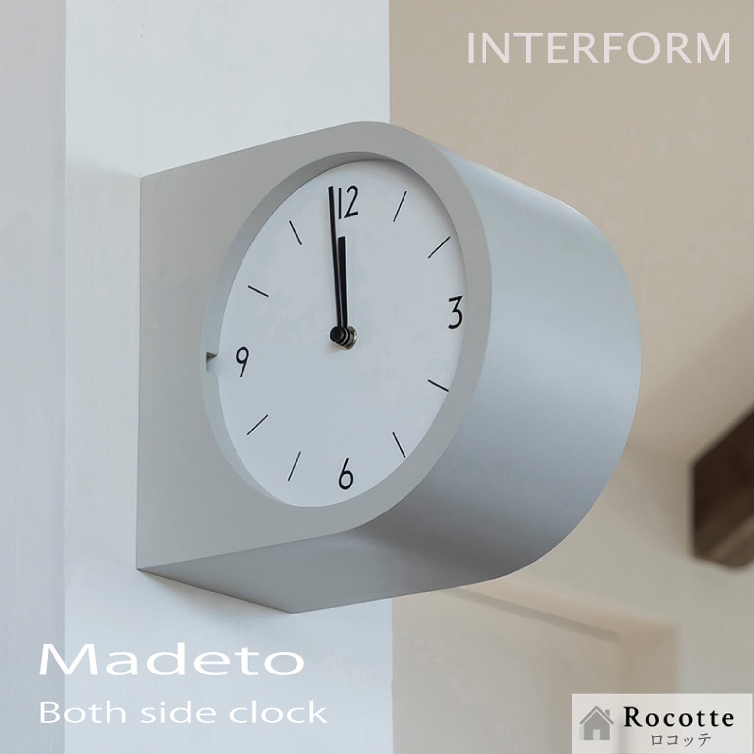 【電池プレゼント】インターフォルム 両面時計 掛け時計 連続秒針 マデト
