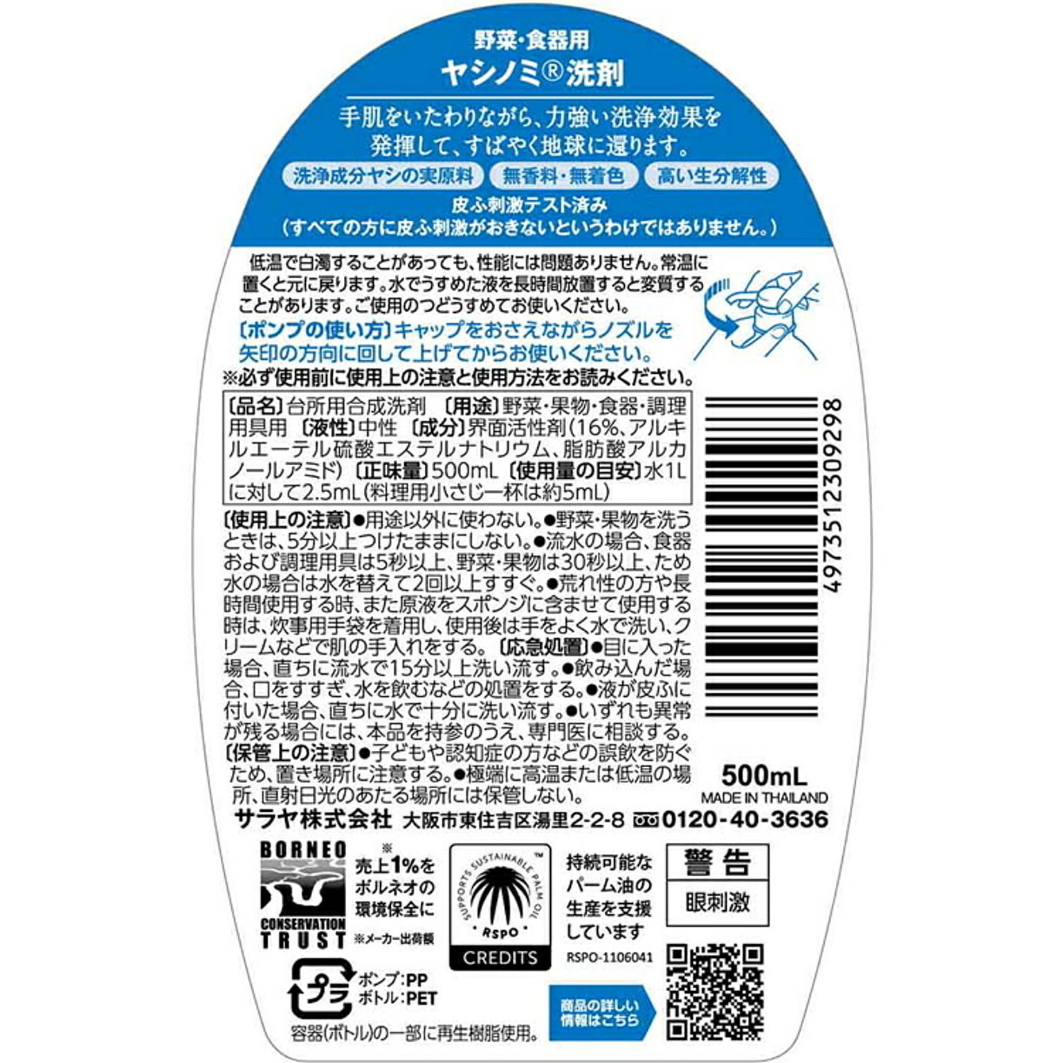 ヤシノミ洗剤 野菜・食器用 本体 500ml 【プラザセレクト】