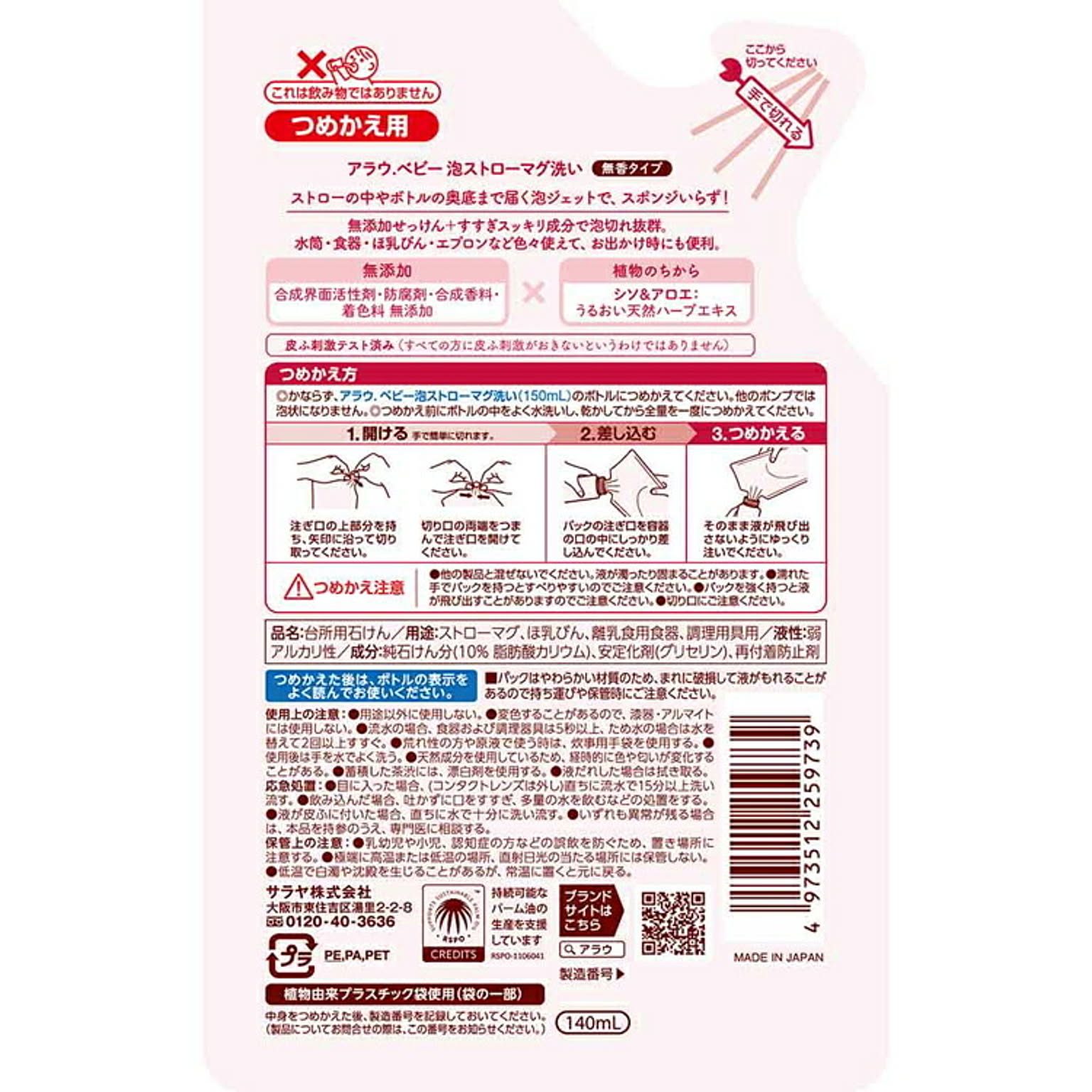 ストローの中やボトルの奥底まで届く泡ジェットで、スポンジ要らず!の泡ストローマグ洗い詰替用。