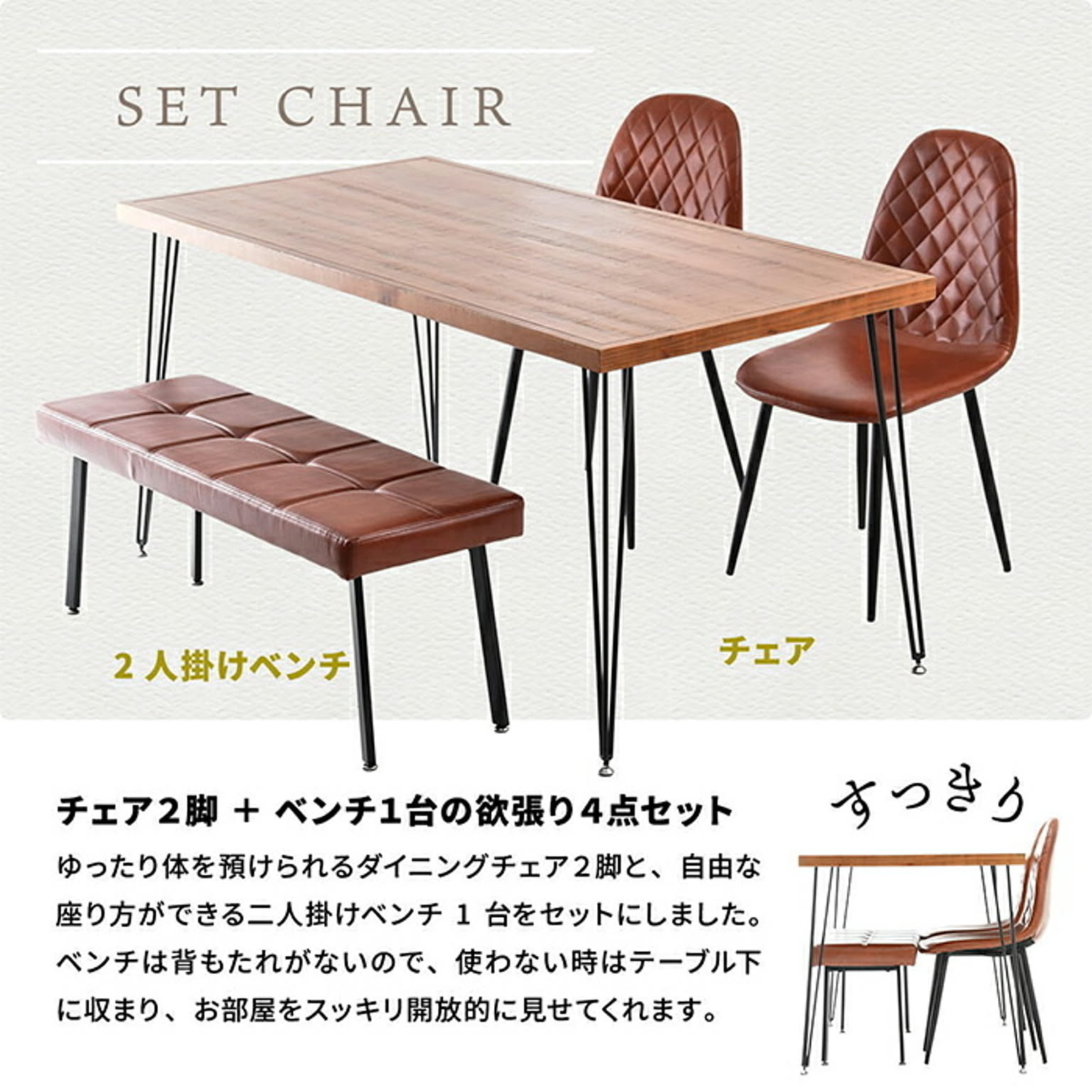 テーブル ベンチ チェア2脚 4点セット 組立式 IFSE0421 幅1500x奥行750x高さ720mm B.Bファニシング