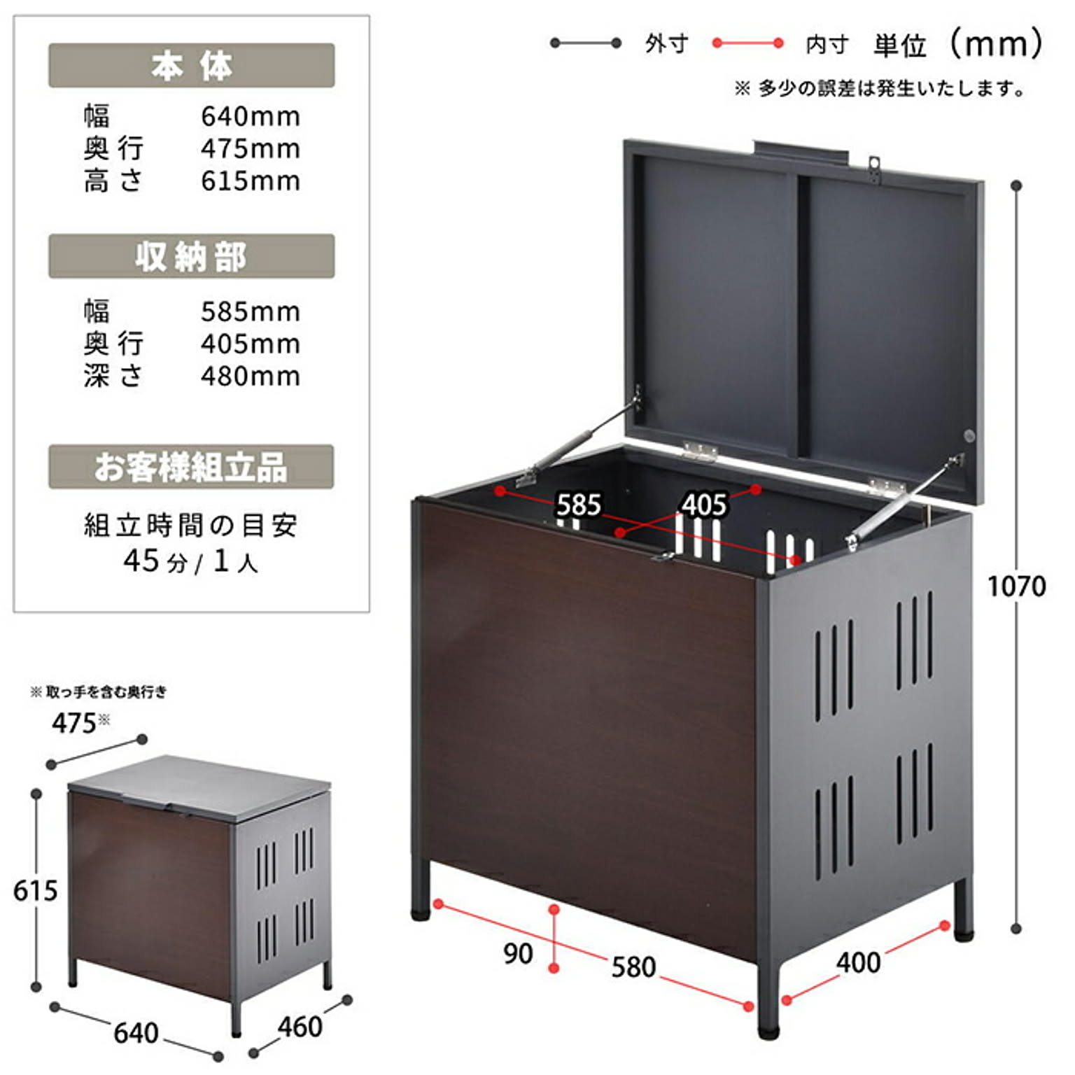 商品サイズ:幅 640 × 奥行 475 × 高さ 615 mm