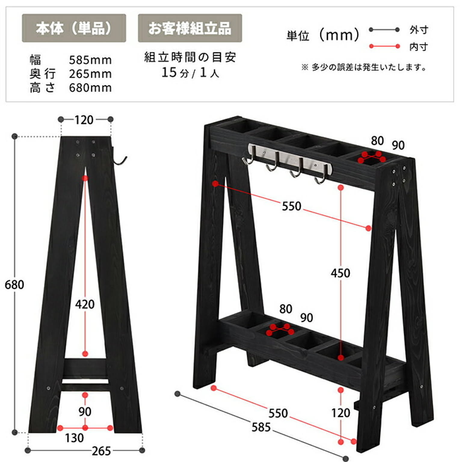 商品サイズ:幅 585 × 奥行 265 × 高さ 680 mm